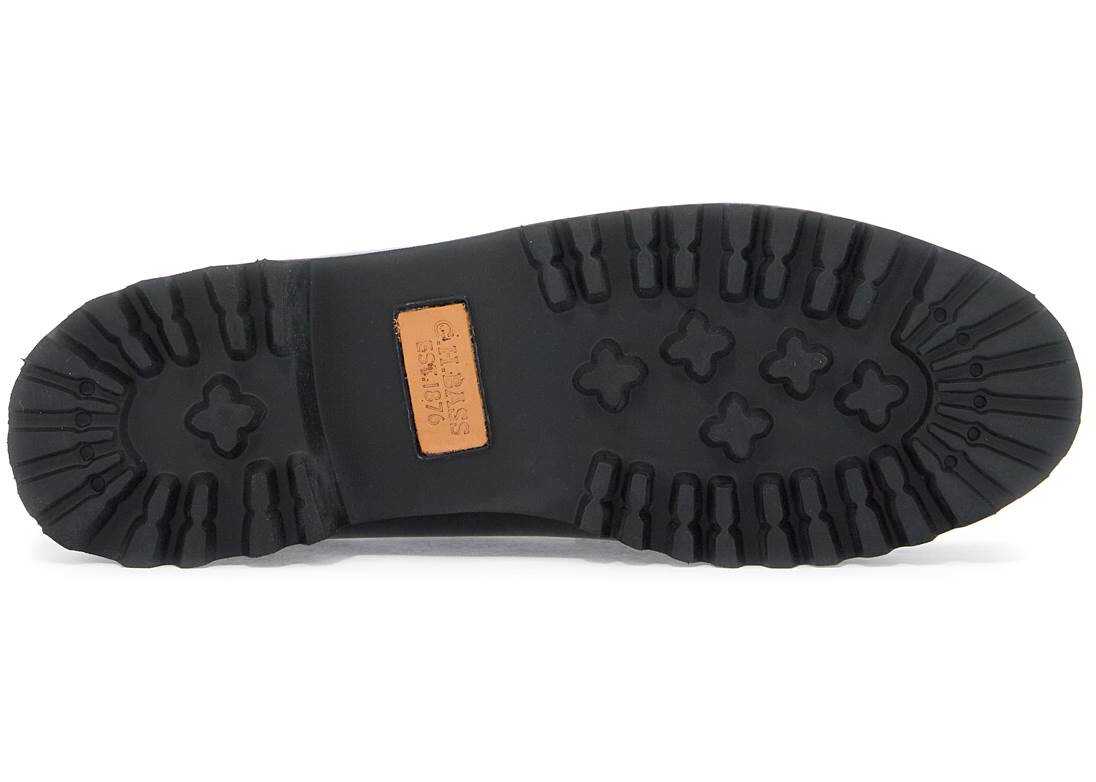 These 90s Weejuns loafers by G.H. Bass & Co are made of shiny leather with a chunky rubber sole. The interior is unlined and features a padded insole for added comfort.