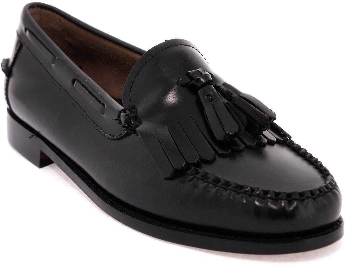 Esther Kiltie Weejuns loafers by G.H. BASS made of brushed leather featuring a fringed kiltie and decorative tassels on the front. Unlined design, perforated leather insole, leather sole. Shoehorn included.