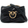 The Pinko Love Puff Baby bag is made of soft nappa leather with a cut-out effect and features the iconic metal buckle with the Love Birds logo on the flap. It comes with a chain shoulder strap and a sliding leather insert, allowing you to wear it as a handbag, shoulder bag or crossbody. The closure is a snap fastener and the interior is lined with microfiber and has a zip pocket. The accessories are in antique gold-finished metal.