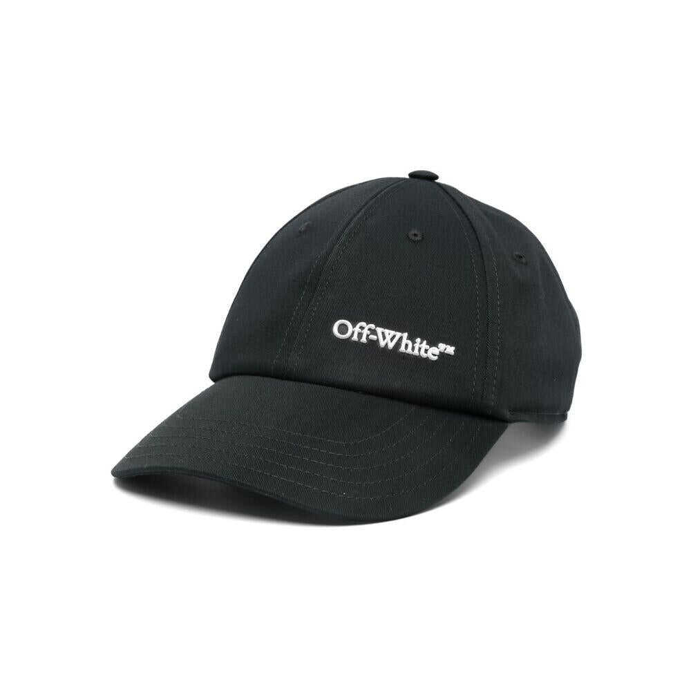 Black cotton twill weave logo lettering curved peak six-panel construction eyelet vents adjustable strap to the rear