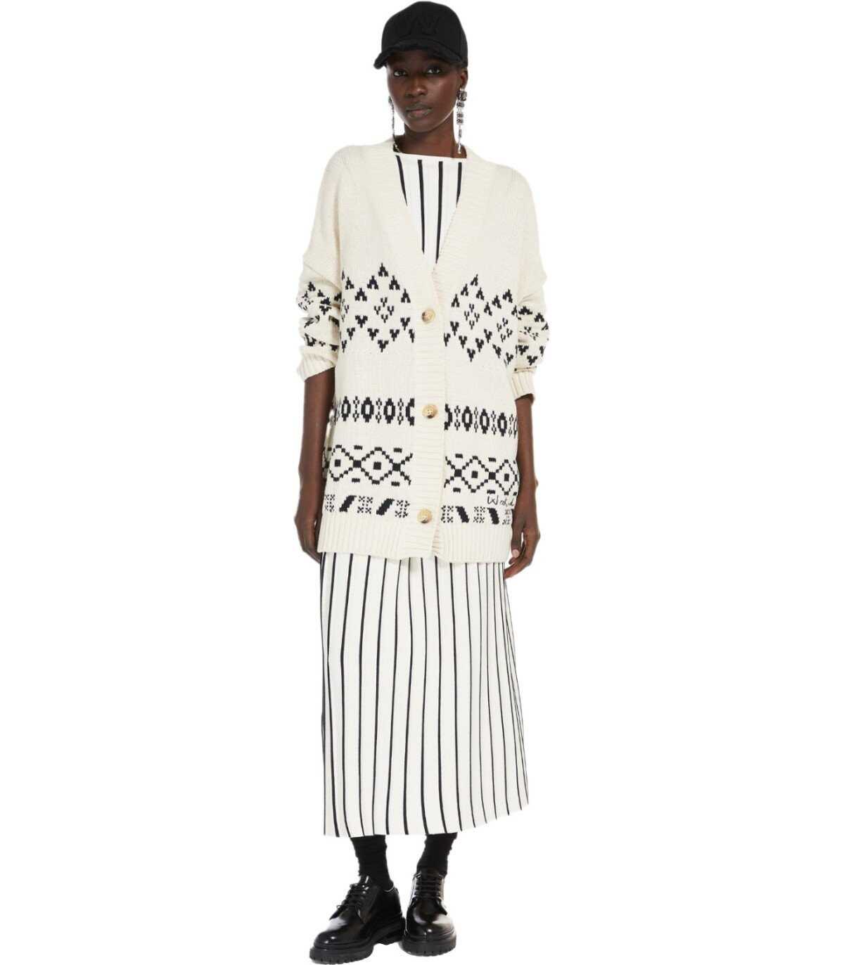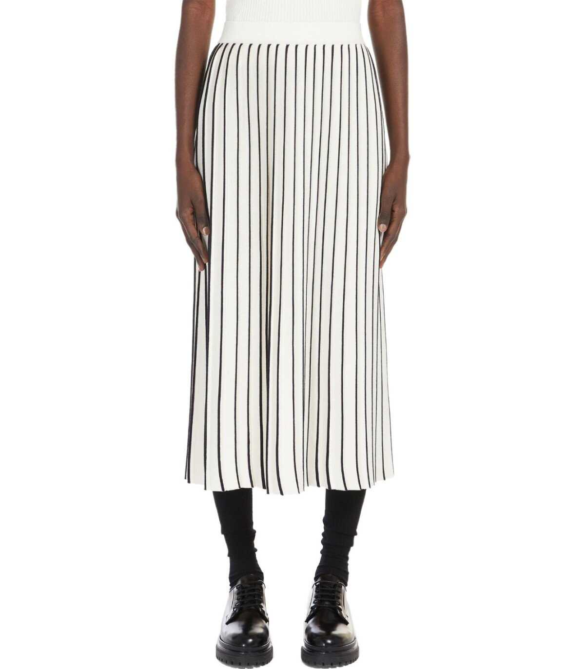 Max Mara Weekend Finanza skirt made of stretch viscose fabric in ecru color. Elasticated waist, vertical stripes in shades of blue. Soft fit.