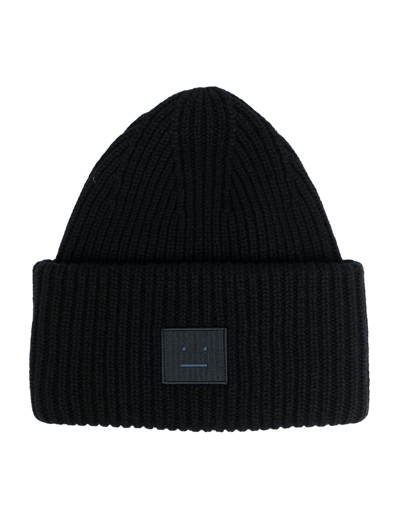 face-patch ribbed knit beanie