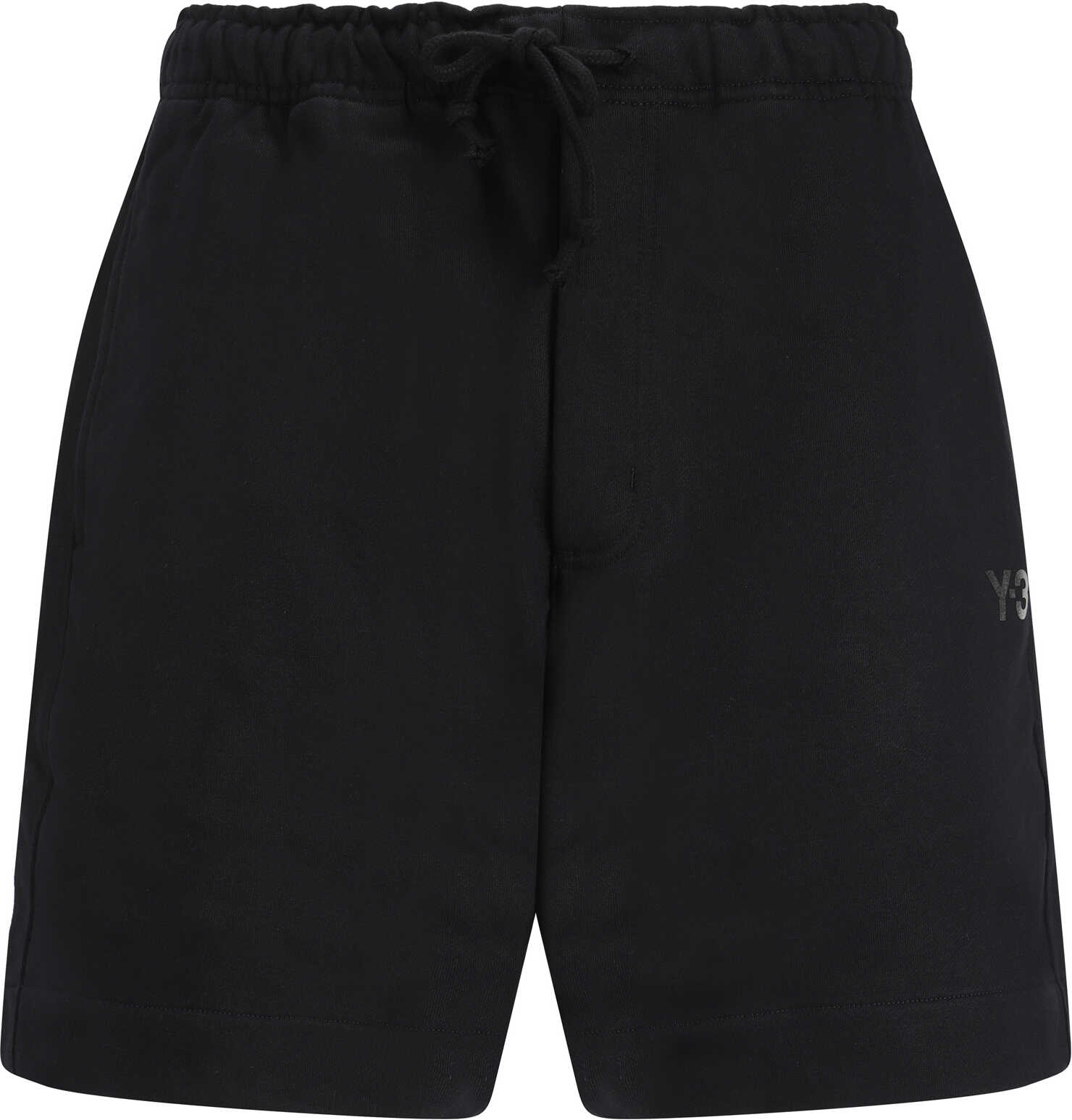 Cotton Shorts by Y-3, elasticated waistband with drawstring, two side welt pockets, one patch pocket on the back, plush interior, iconic brand monogram on the front.