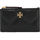 The Kira credit card holder by Tory Burch is made of leather with a diamond quilted pattern and features a double T in gold metal. It has four slots on the back and a central zip pocket.