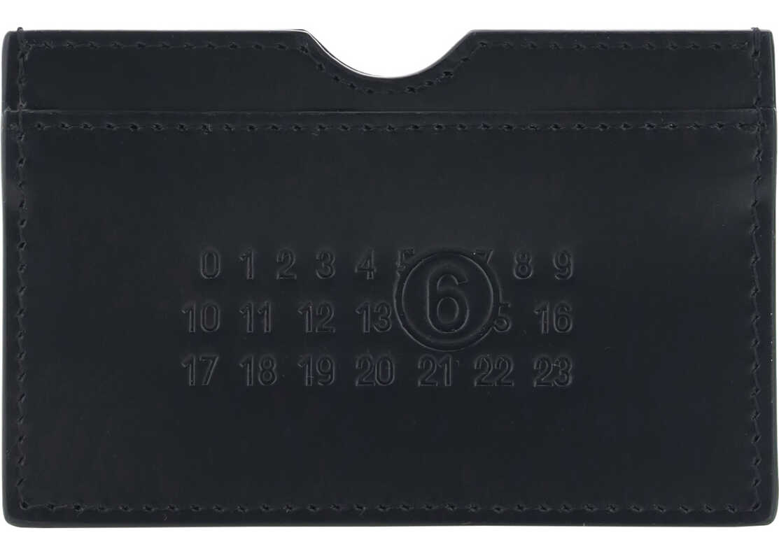 Leather Card Holder by MM6, card slots on front and back, iconic brand monogram press-stamped on front, iconic brand stitching embroidered on back.