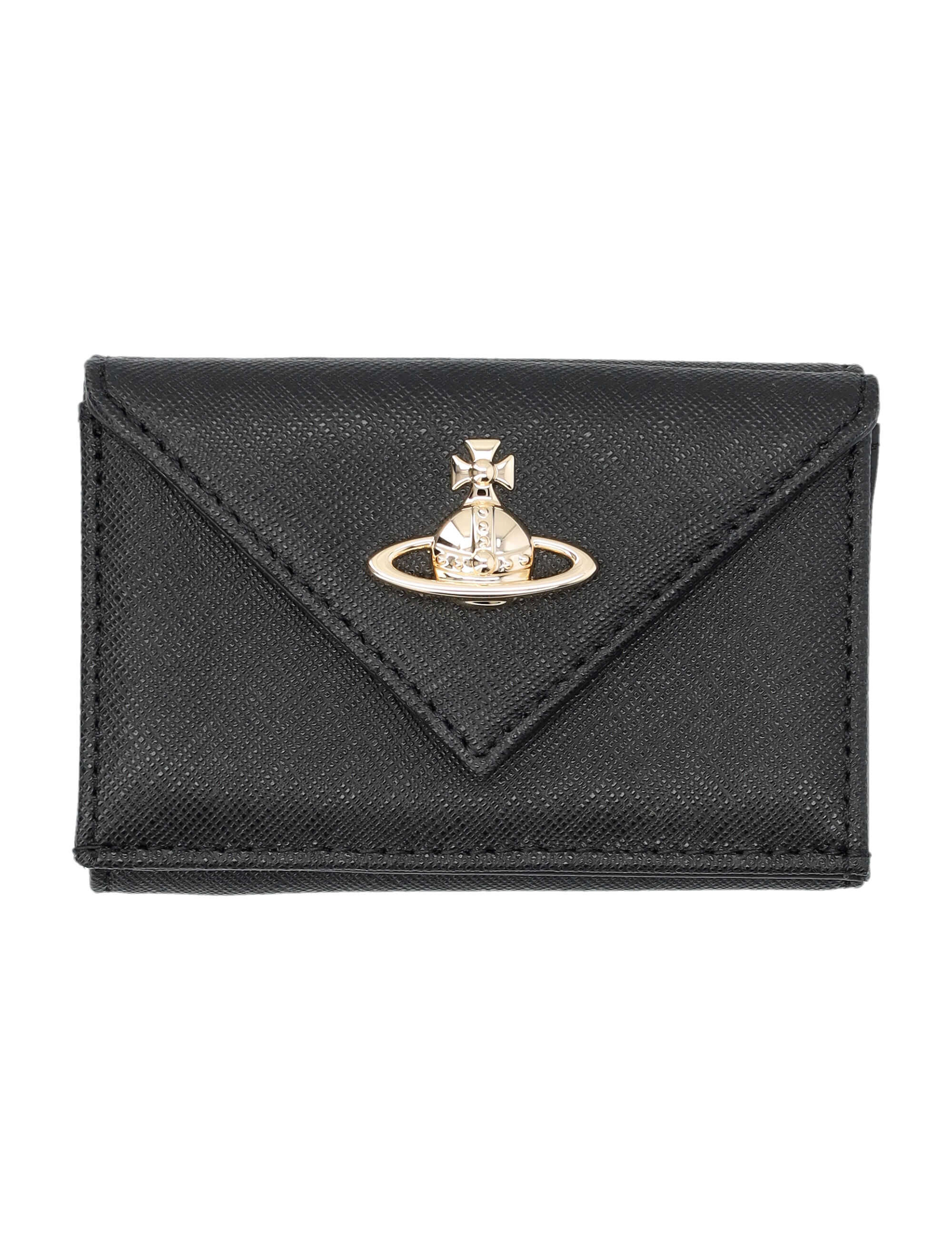 Upgrade your style with this elegant black Envelope Billfold by Vivienne Westwood. Made of luxurious 100% cow leather, it features the iconic Orb emblem, a snap button closure, and an interior slip pocket. Compact in size, yet spacious enough to hold your essentials. Elevate your accessory game with this timeless piece.
