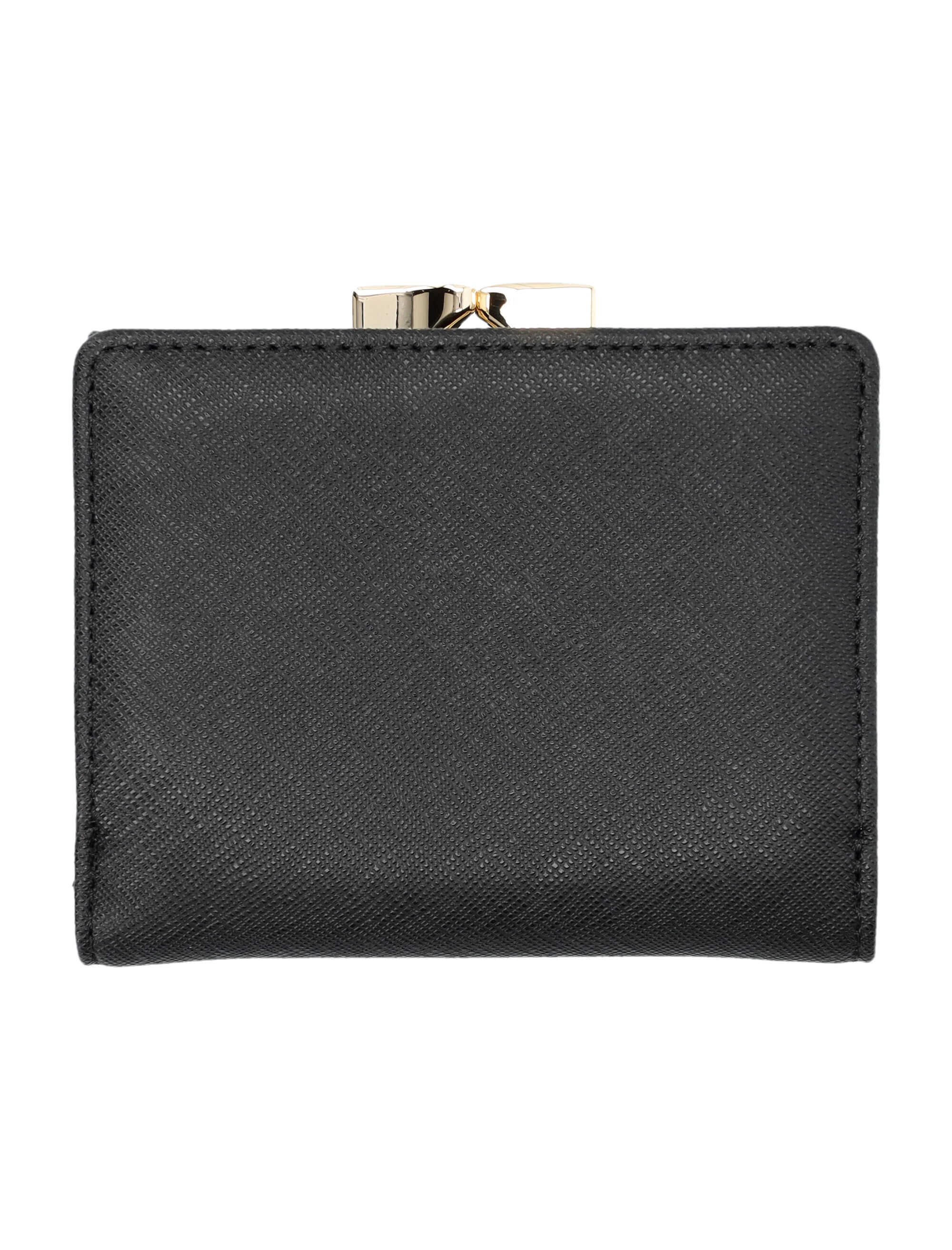 Indulge in luxury with this sleek black small frame wallet by Vivienne Westwood. Crafted from 100% cow leather, it features the iconic Orb emblem, multiple card slots, and a bill compartment. Stay organized in style with this elegant accessory.