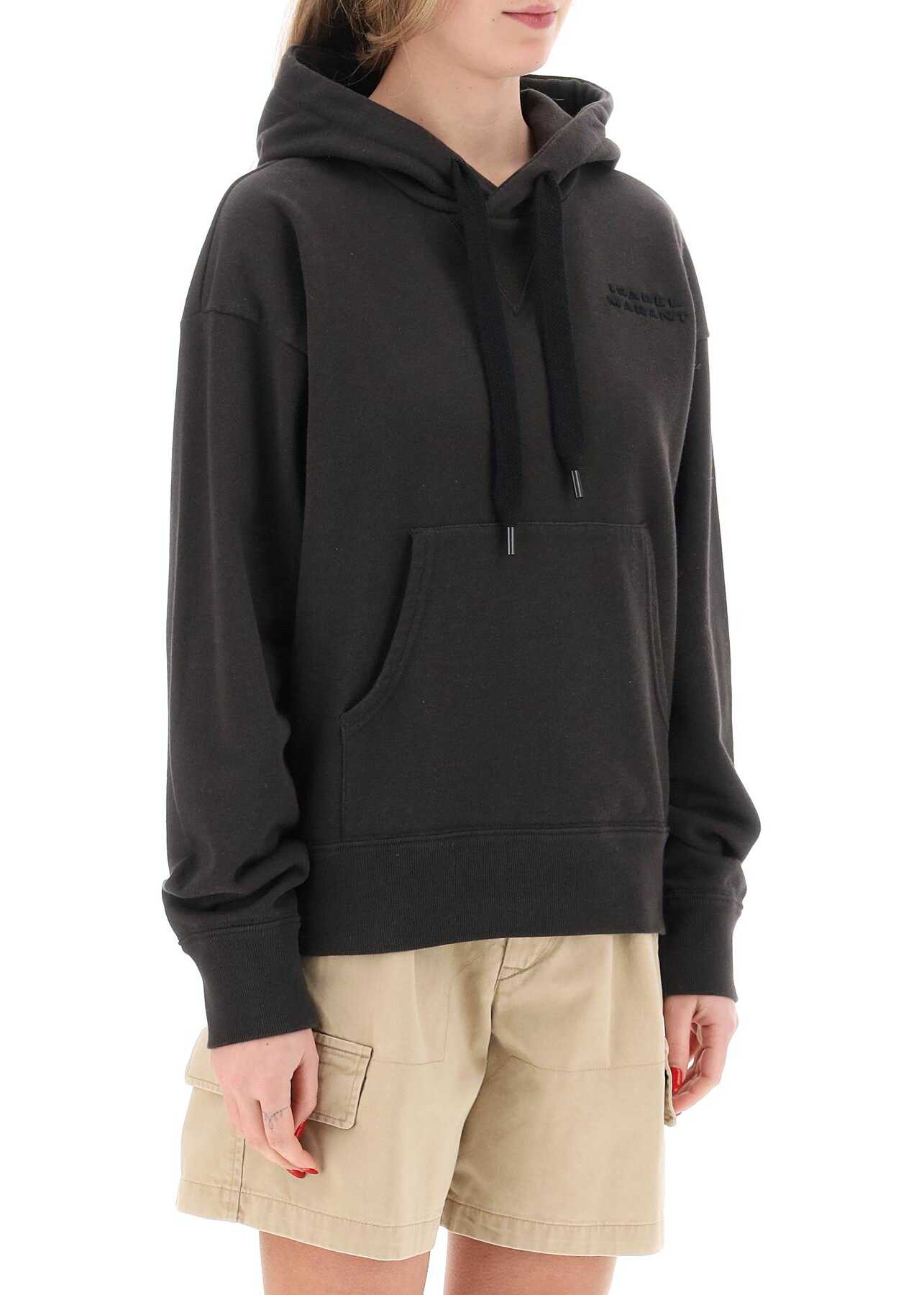 Isabel Marant sweatshirt crafted in faded-effect organic cotton and recycled polyester blend french terry with a small logo embroidery on the chest. It features adjustable hood with drawstring, kangaroo pocket and ribbed trims. Loose fit with dropped shoulders. The model is 177 cm tall and wears size FR 34.