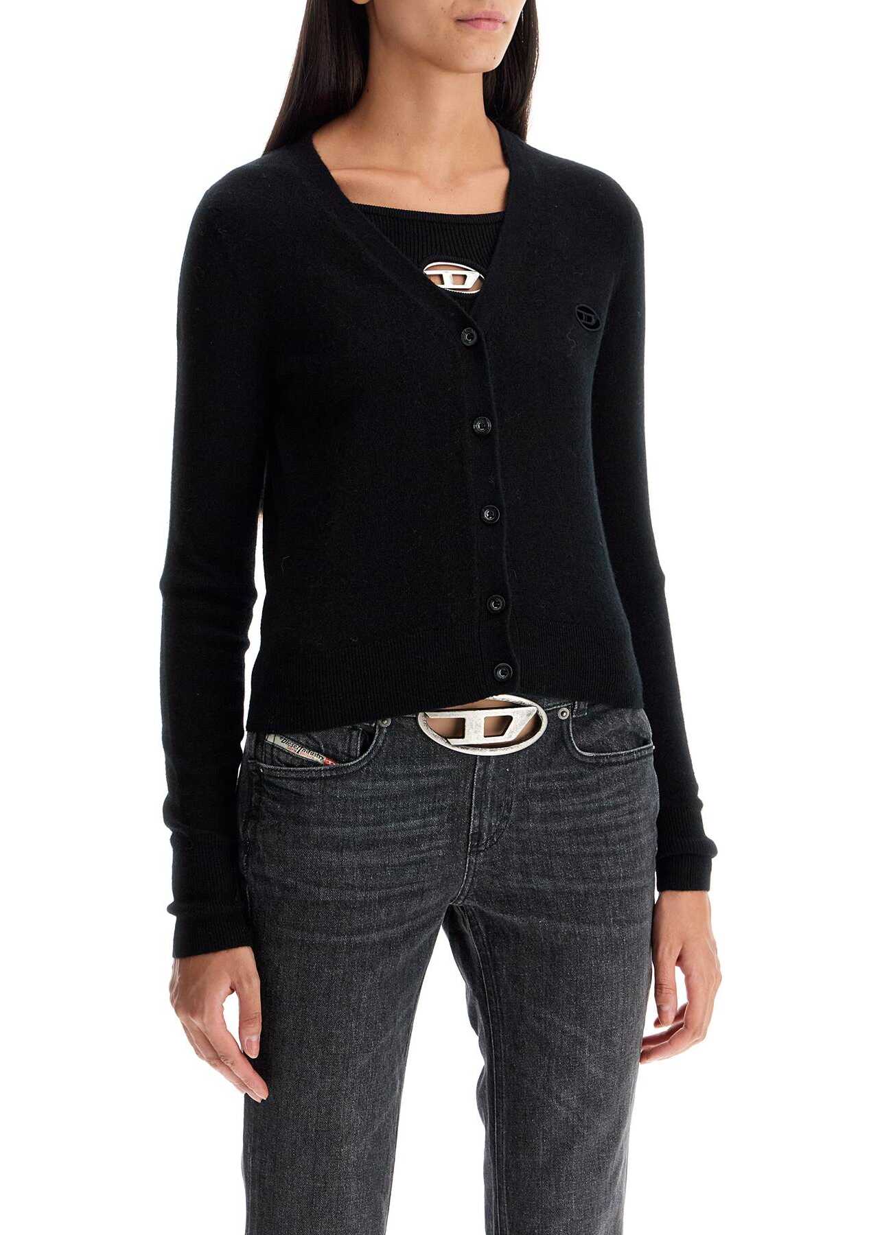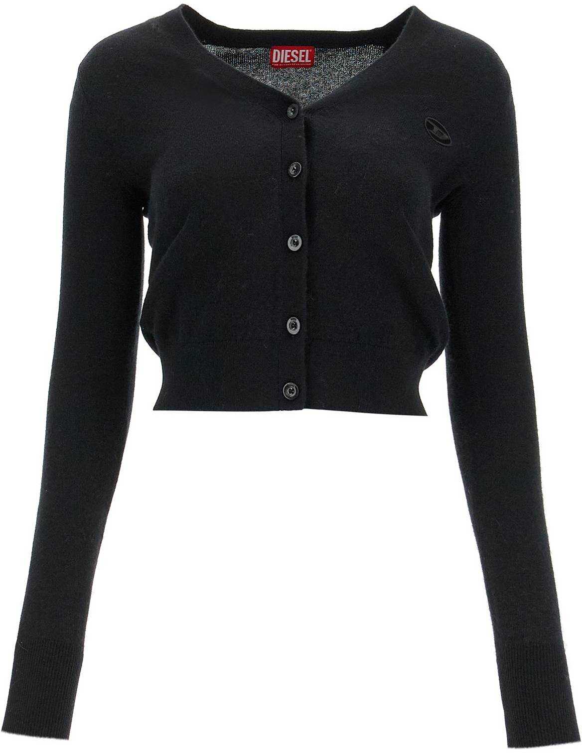 This Diesel wool and cashmere cardigan is characterized by a short and dry cut with a V-neckline and classic button closure. The "Oval D" logo is embroidered on the chest with cut-out details. Ribbed edges complete the look. The model is 177 cm tall and wears size XS.