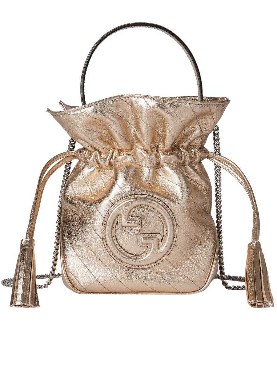 Gucci presents this Blondie mini bucket bag made of metallic leather patched with round GG Crossing.