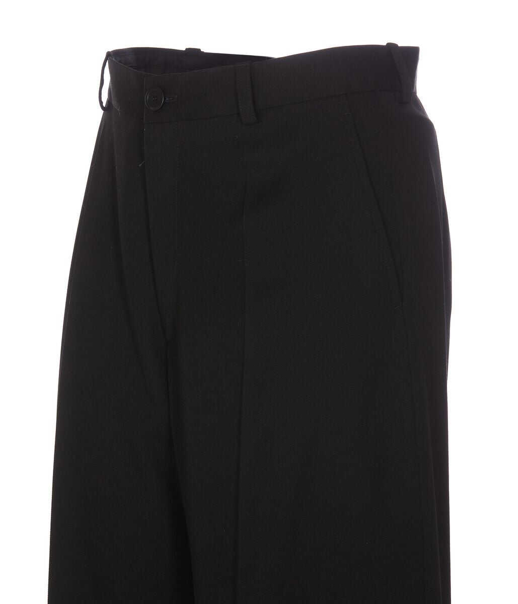 Balenciaga's oversized pants crafted in black regenerative twill. Featuring button / zip closure, belt loops, multiple pockets and pressed crease along centre. Partially lined interior.