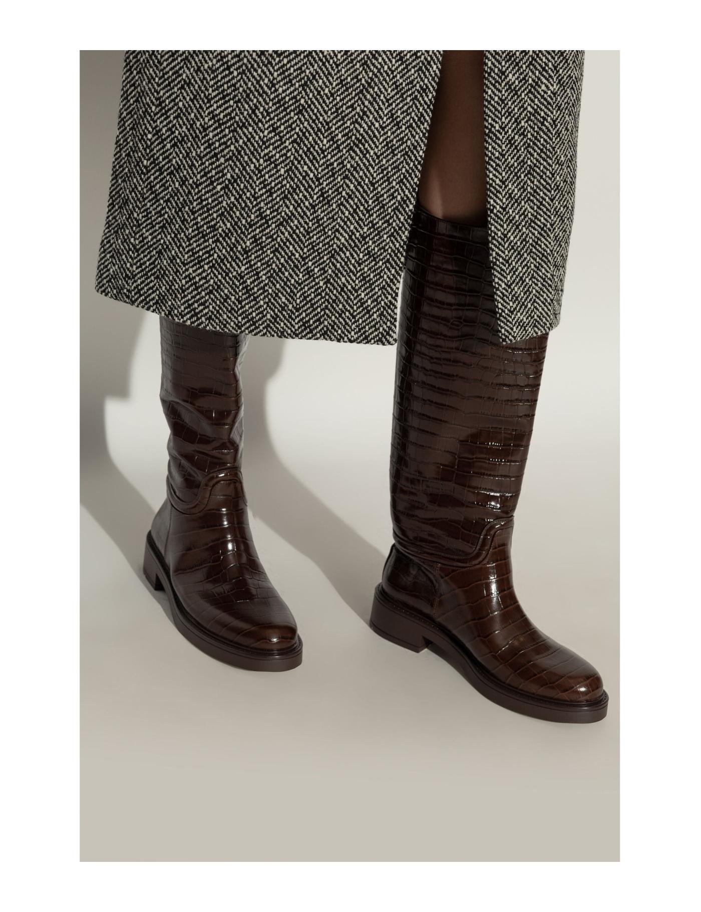 crocodile-embossed leather boots