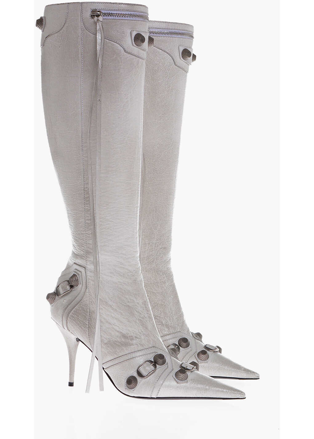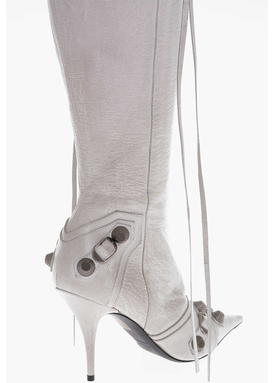 Vintage Effect Leather Cagole Boots Heel 10 Cm