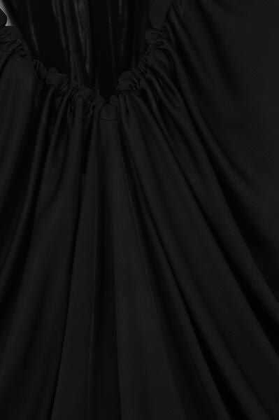 Saint Laurent's sleeveless long dress crafted in black shiny responsible jersey. Featuring band straps, front U-neckline and back wide V-neckline with curled edge. The design is completed by the pleated details. Unlined interior.