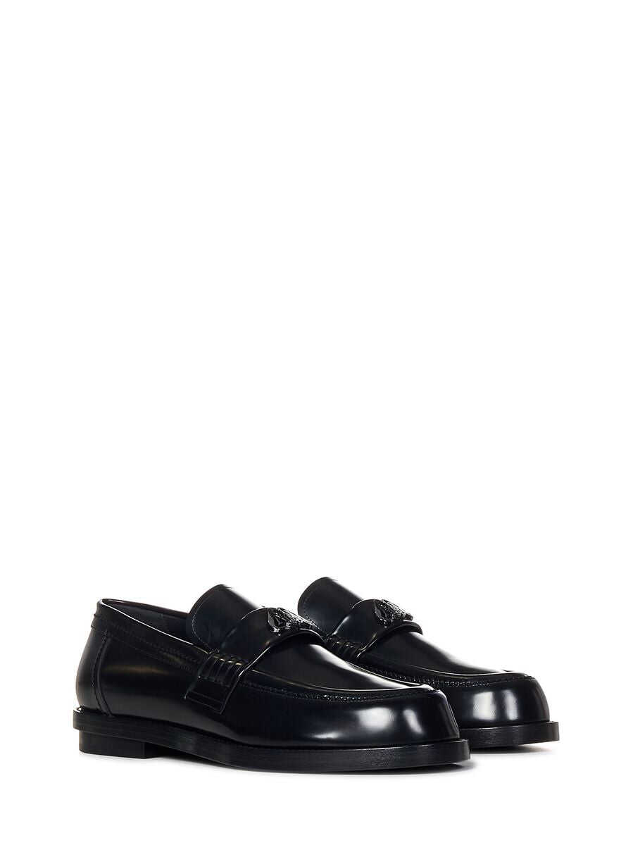black calf leather polished finish tonal stitching round toe stitched-fold detailing tonal logo plaque to the front decorative stitching to the sides branded leather insole flat leather sole slip-on style