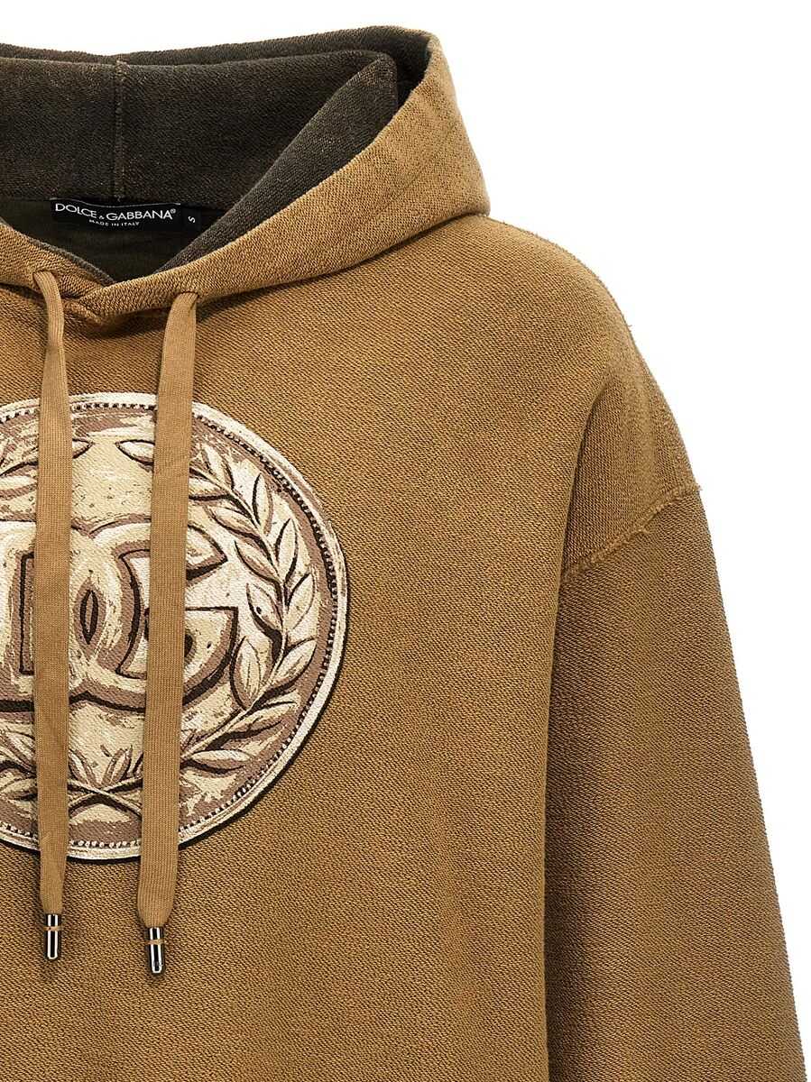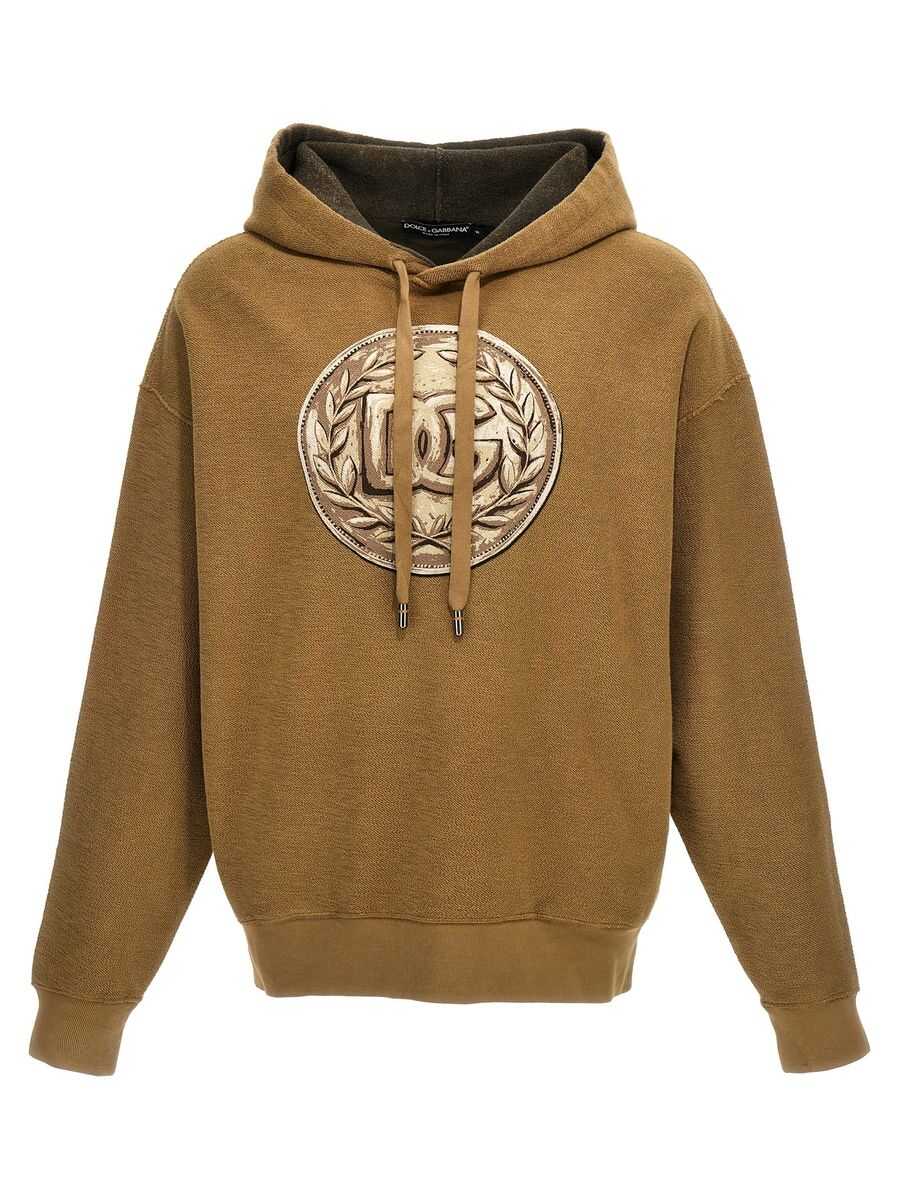 logo-print long-sleeved hoodie from DOLCE & GABBANA featuring sand brown, cotton, logo print to the front, drawstring hood, long sleeves, ribbed cuffs and hem and straight hem.