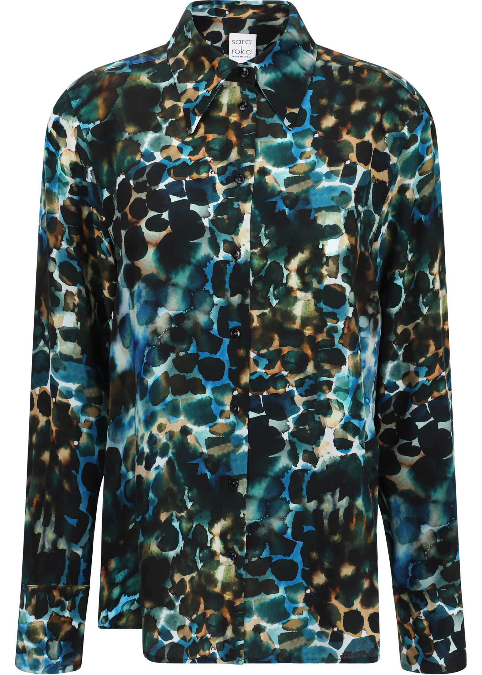 Silk Shirt by Sara Roka, classic collar, front button closure, multicolor pattern, regular fit.