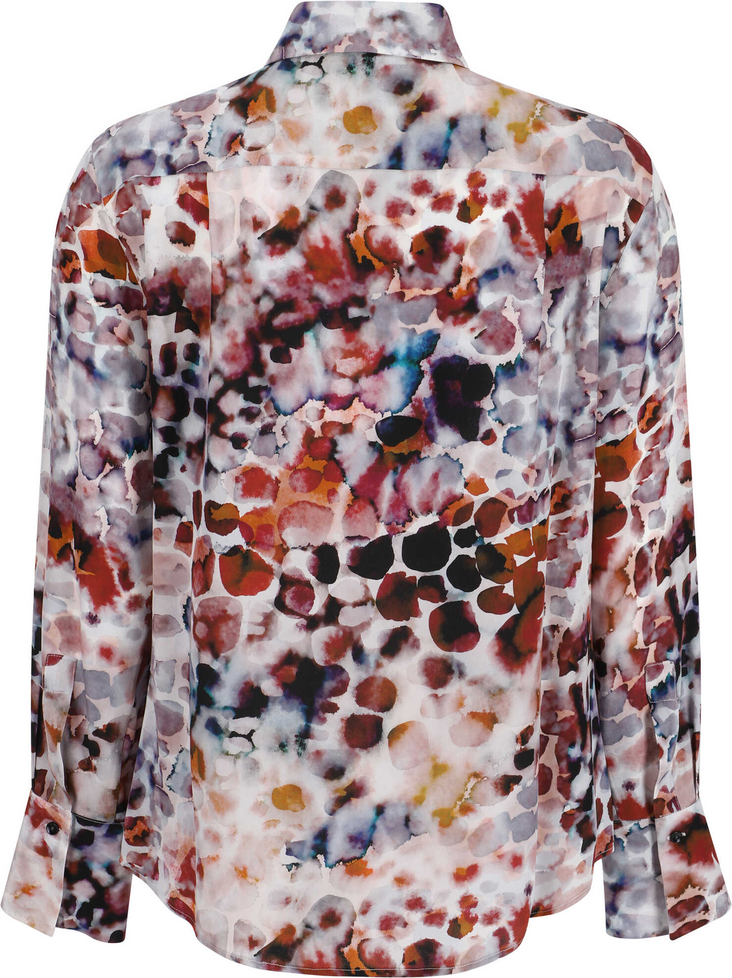 Silk Shirt by Sara Roka, classic collar, front button closure, multicolor pattern, regular fit.