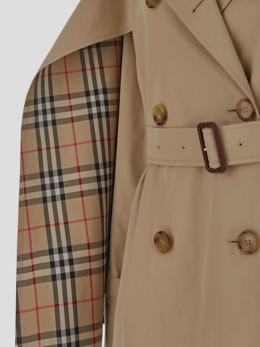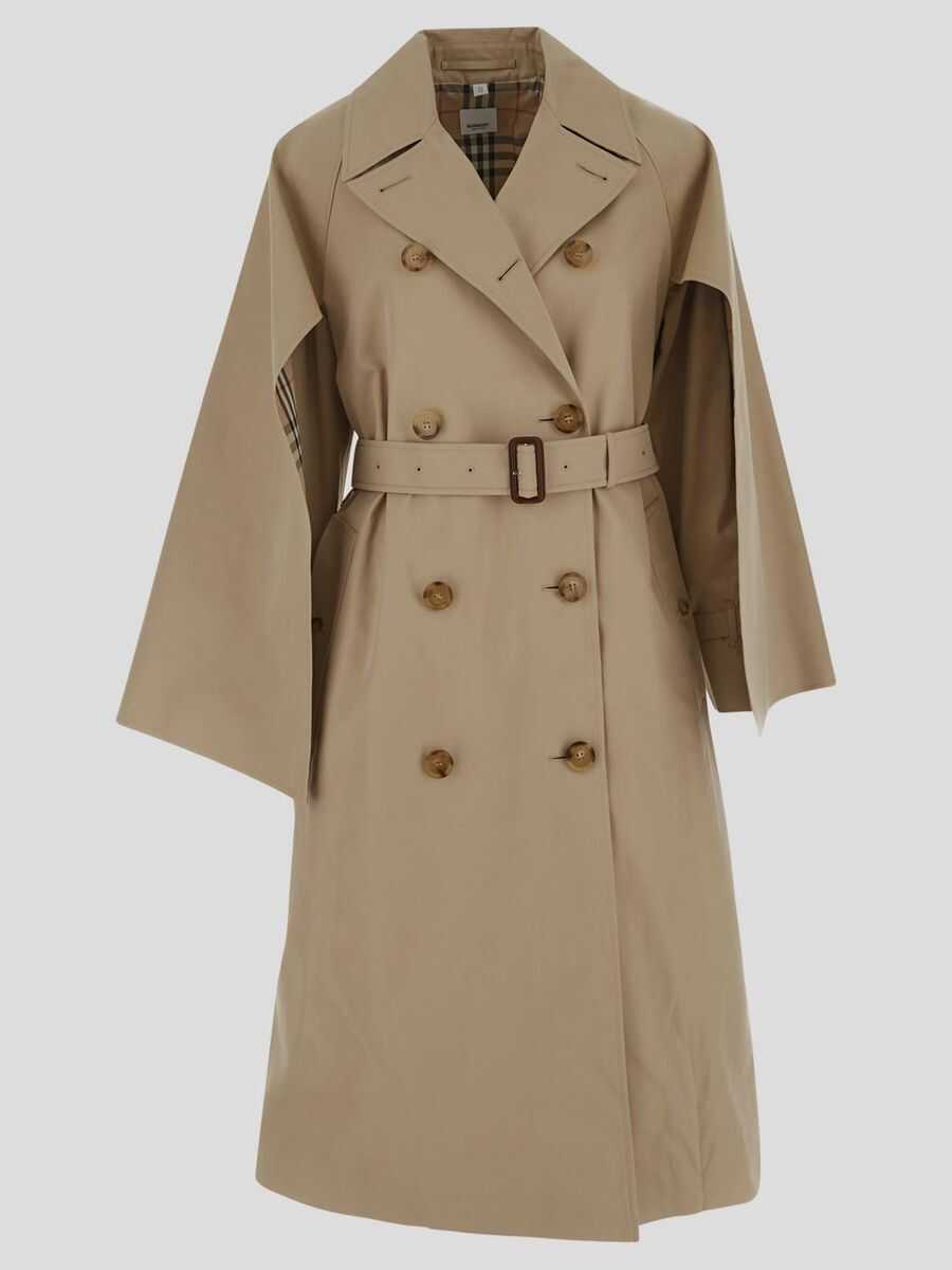 Check-pattern cotton trench coat from BURBERRY featuring archive beige, Vintage Check pattern, cotton, notched lapels, double-breasted button fastening, belted waist, long sleeves, belted cuffs, straight hem and mid-length. This piece fits true to size. We recommend you get your regular size