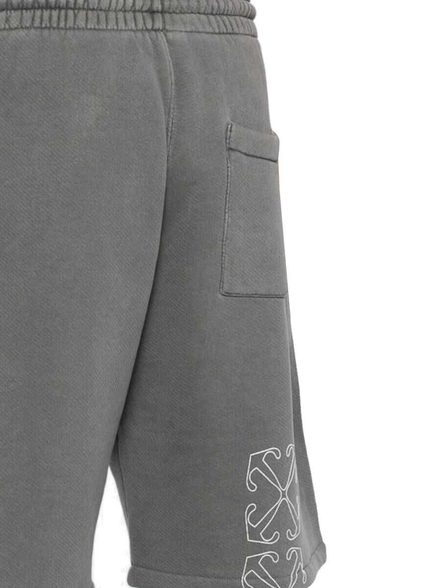 medium grey cotton jersey texture elasticated drawstring waistband logo print to the side and rear two side inset pockets rear patch pocket straight hem