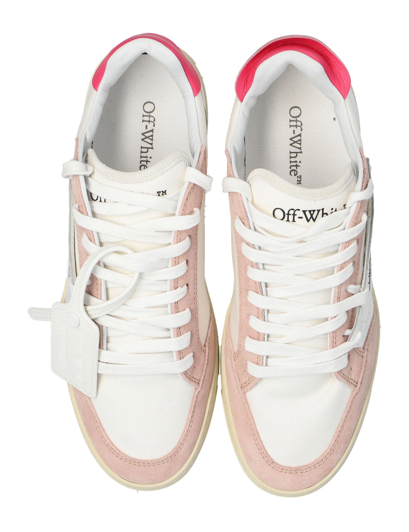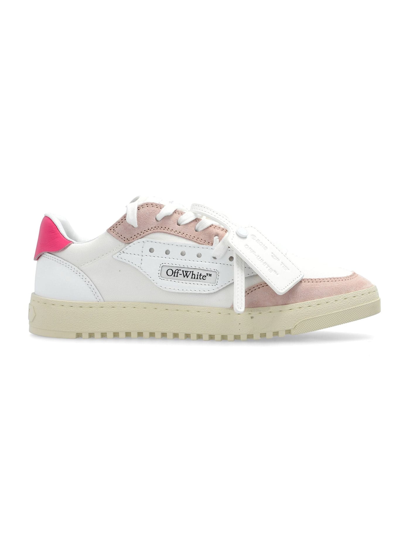 white/pink leather panelled design appliqué logo logo tag logo patch at the tongue perforated detailing contrasting heel counter round toe front lace-up fastening branded insole ridged rubber sole