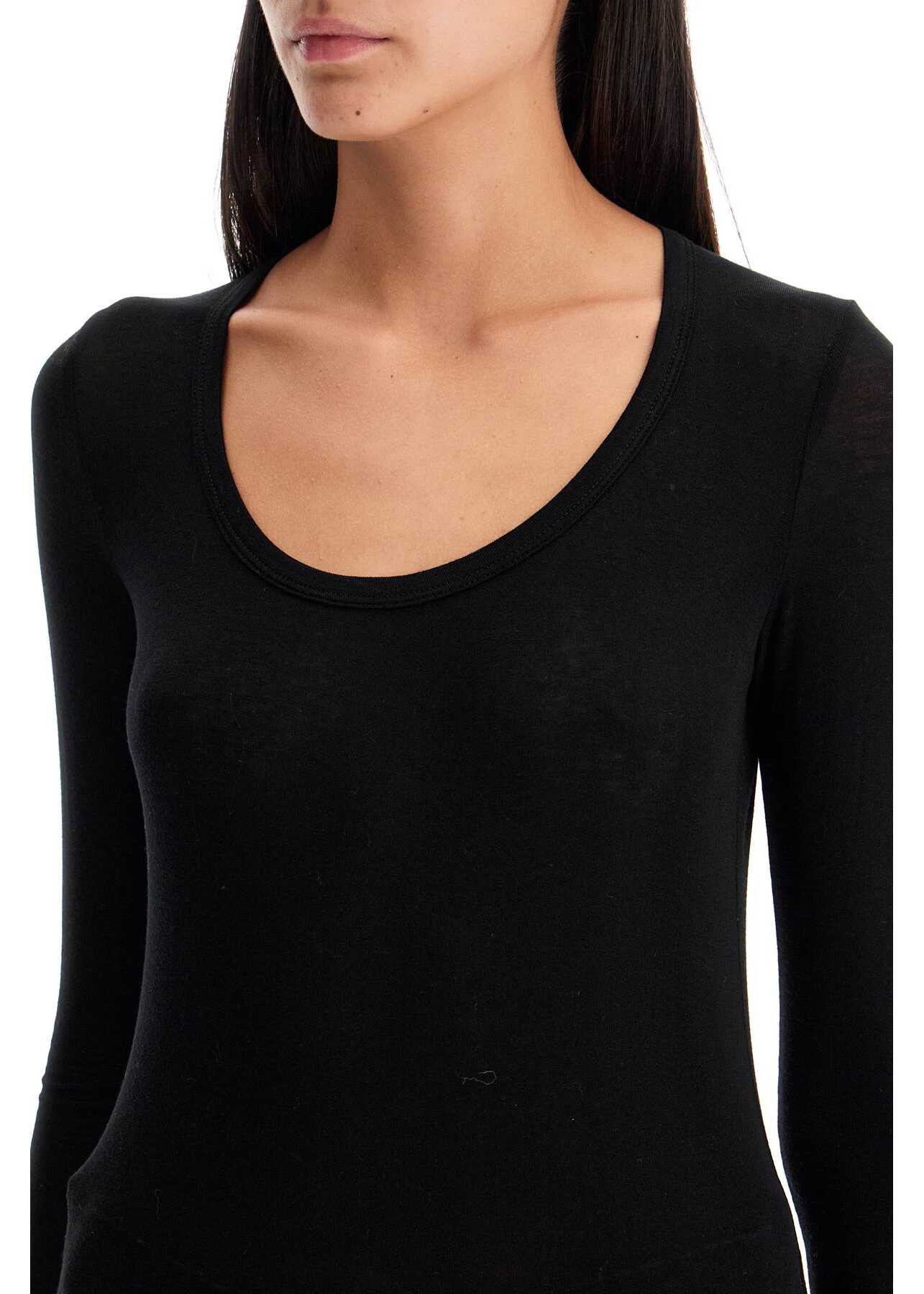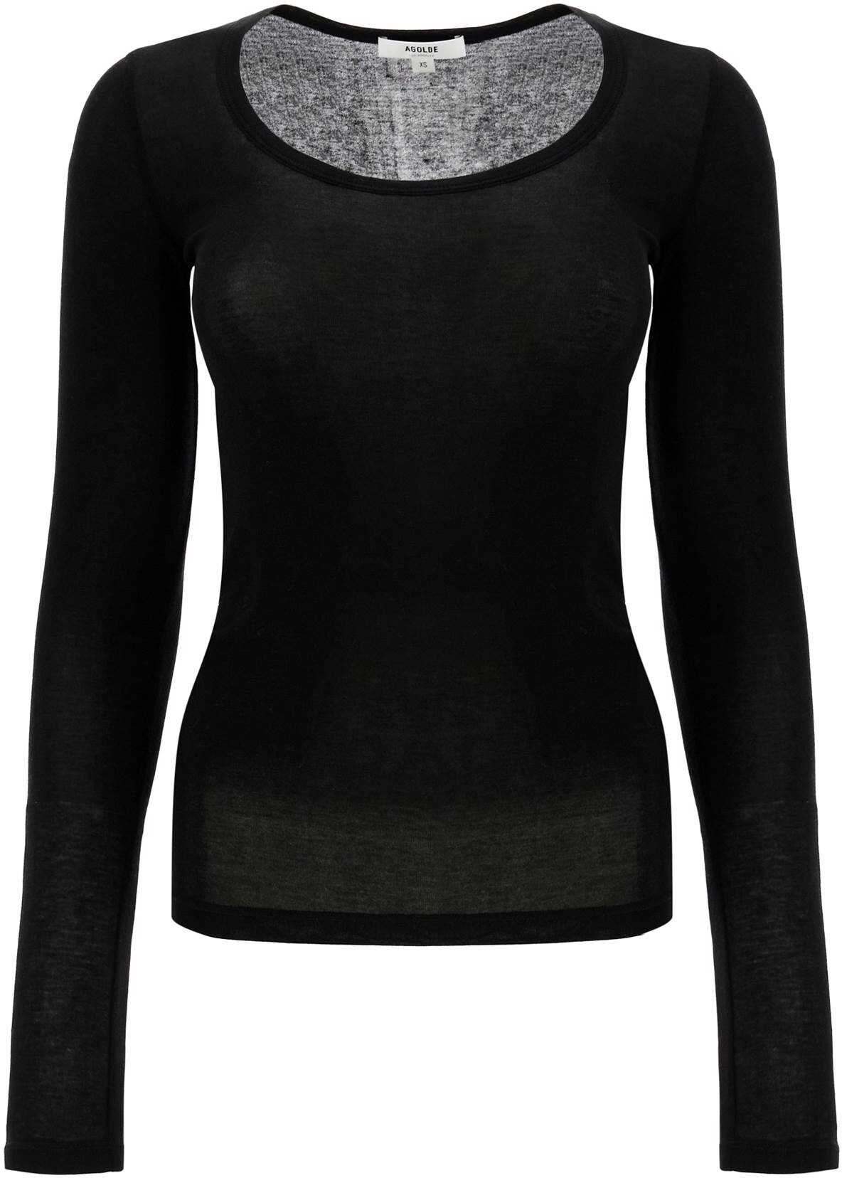 This Agolde long-sleeved t-shirt is made of lightweight and fluid stretch lyocell jersey, featuring a fitted silhouette with a wide round neckline. The model is 177 cm tall and wears size XS.
