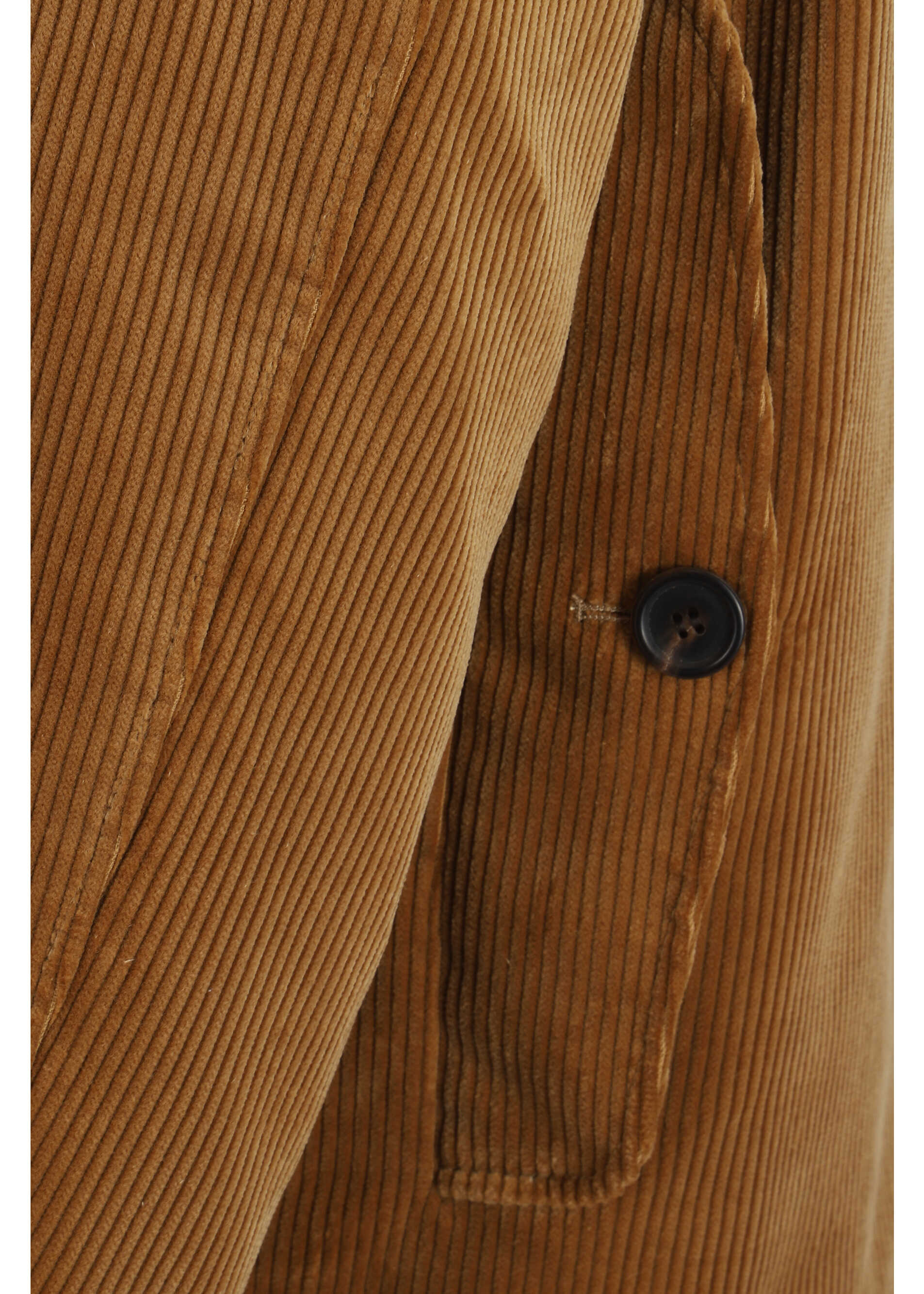 Cotton Jacket by Prada, corduroy design, double leather and ribbed classic collar, front button closure, four button-fastening flap patch pockets, two button-fastening side welt pockets, button-adjustable sleeves, monochrome pattern, regular fit.