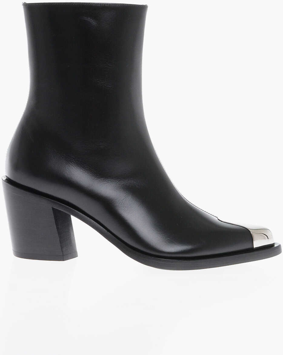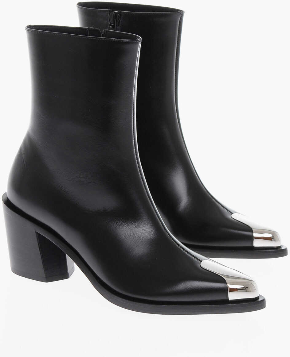 Pointed Leather Booties With Metal Detail Heel 7 Cm