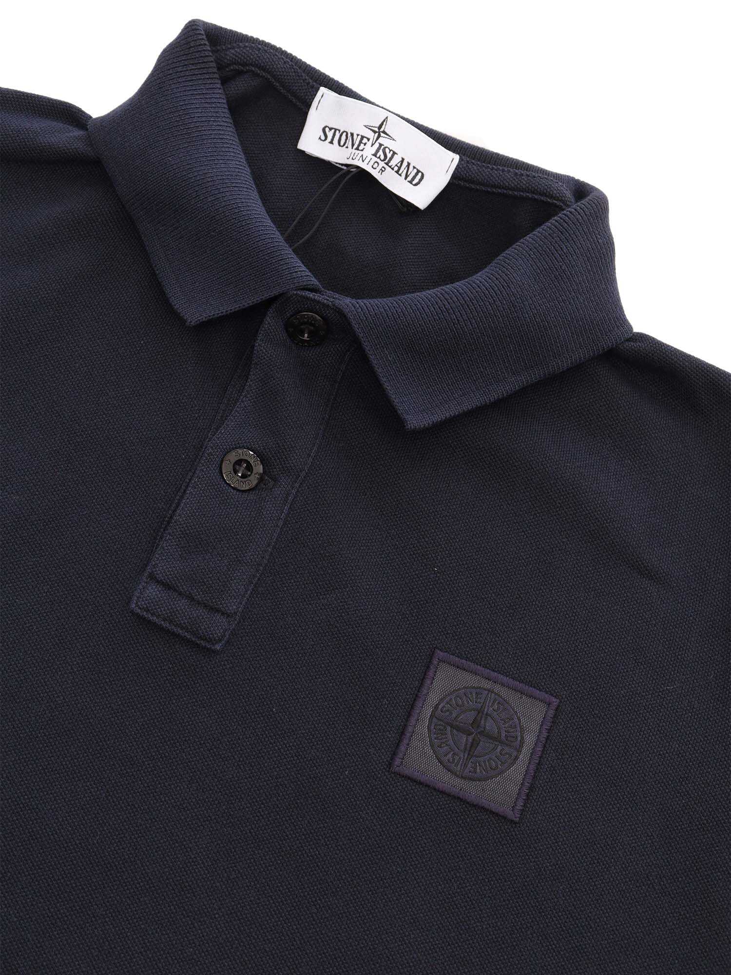 Stone Island black children's polo shirt in cotton with tone-on-tone logo plate on the front.