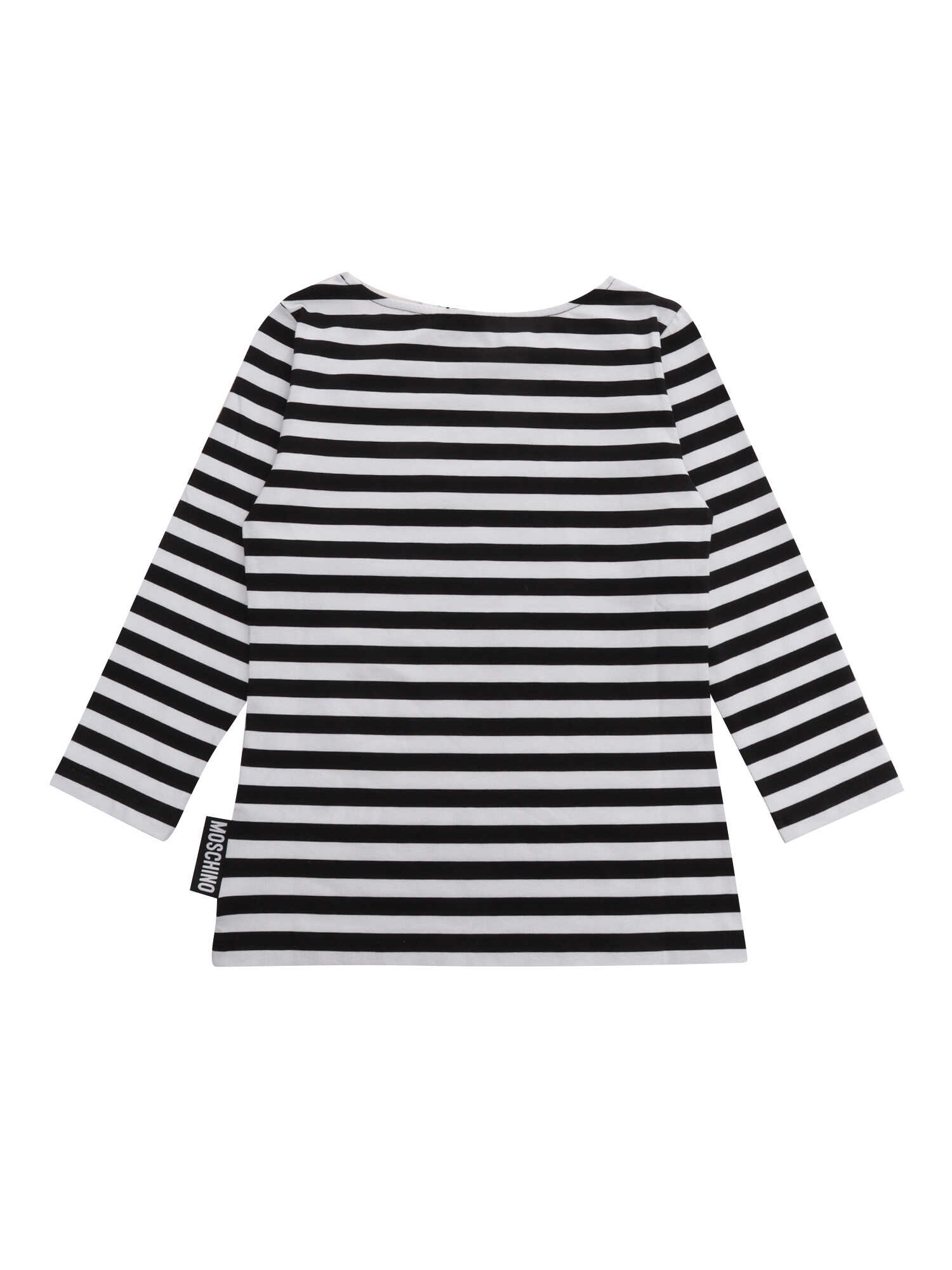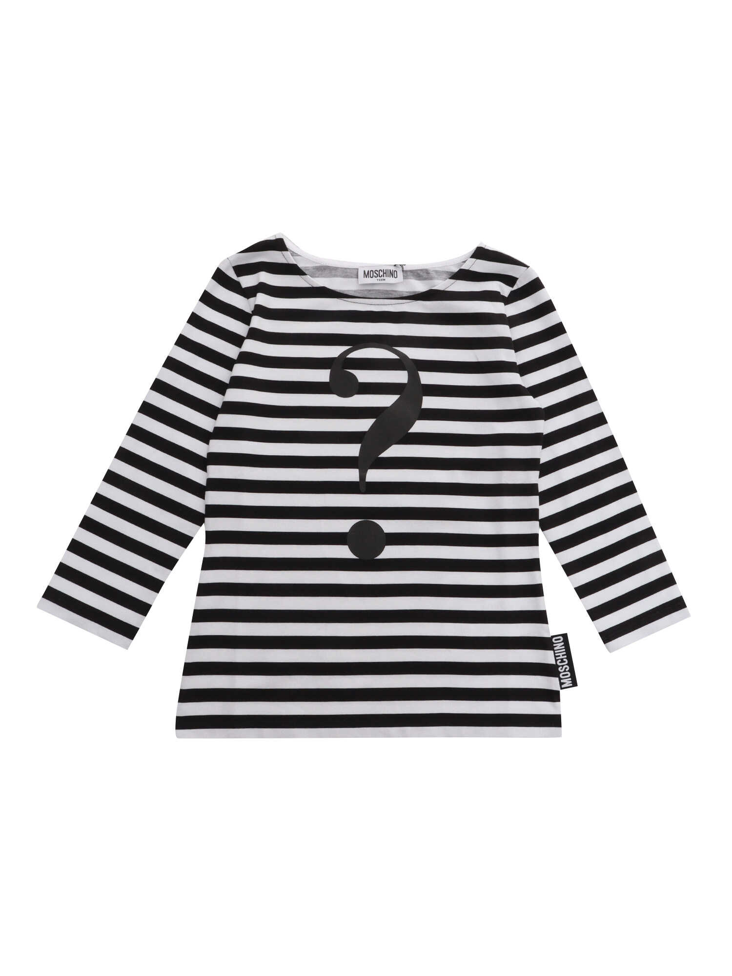 Girls' striped sweater in stretch cotton, 3/4 sleeves, crew neck, ? printed on the front
