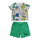 Two-piece set with crew-neck t-shirt with prints and green shorts with logo.