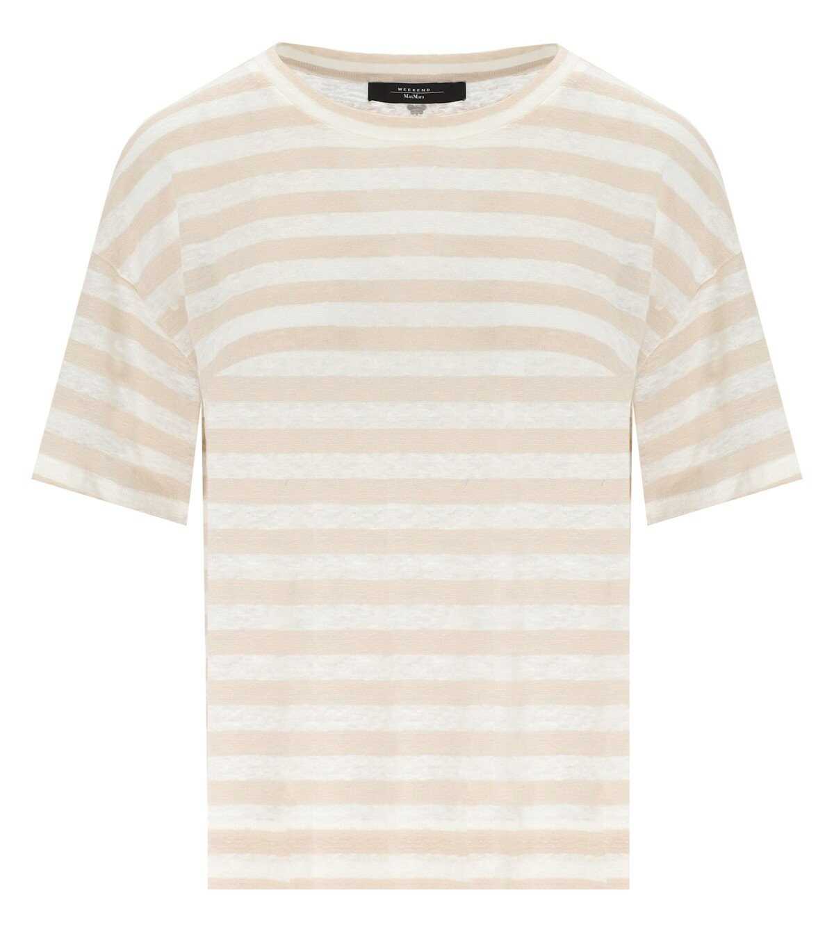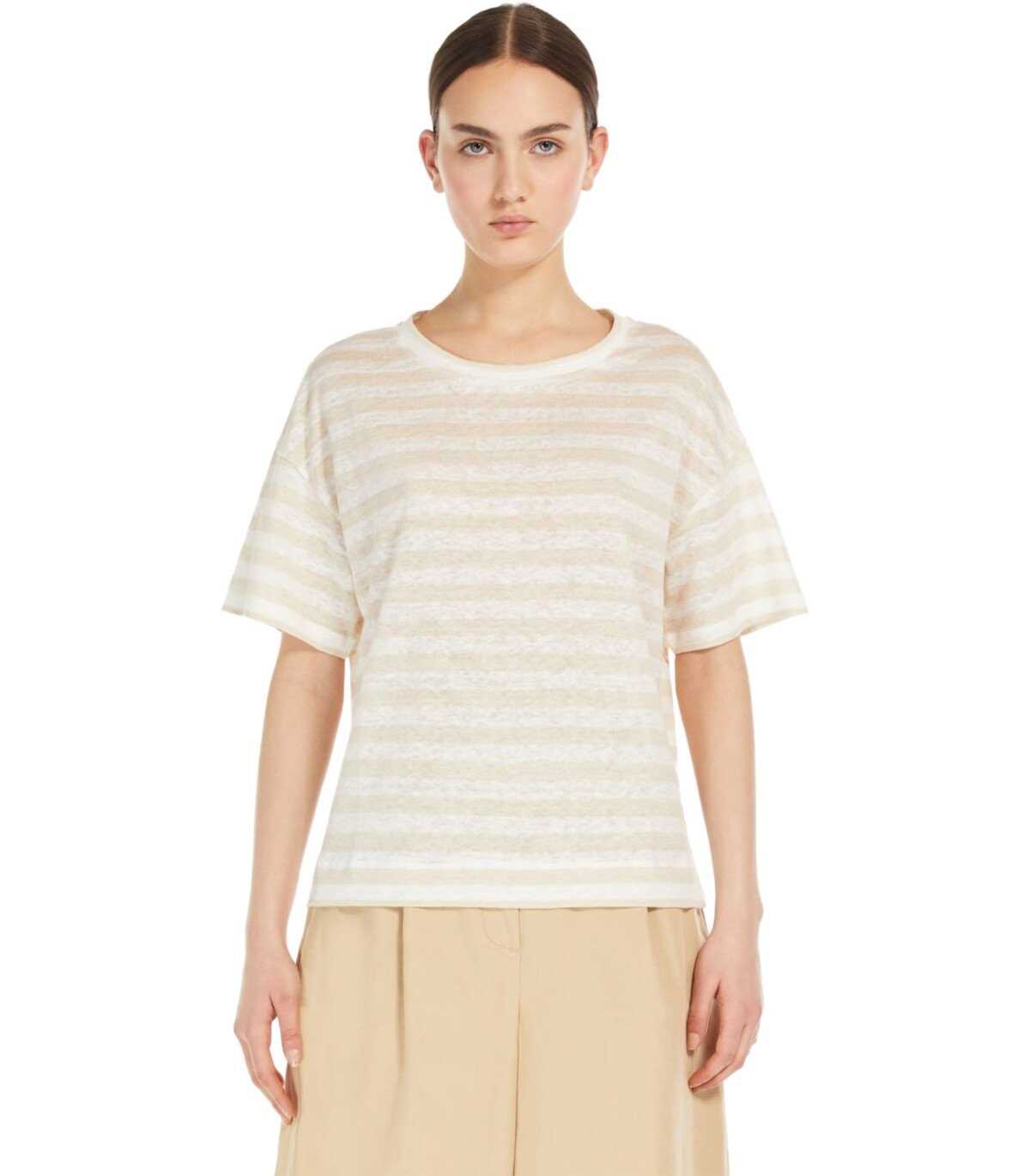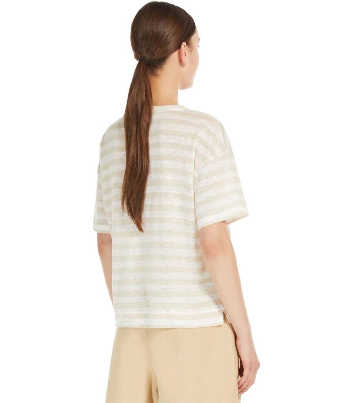 Falla t-shirt by Max Mara Weekend in linen jersey with horizontal ivory striped pattern. Side slits and printed logo on the back of the neck. Soft fit.