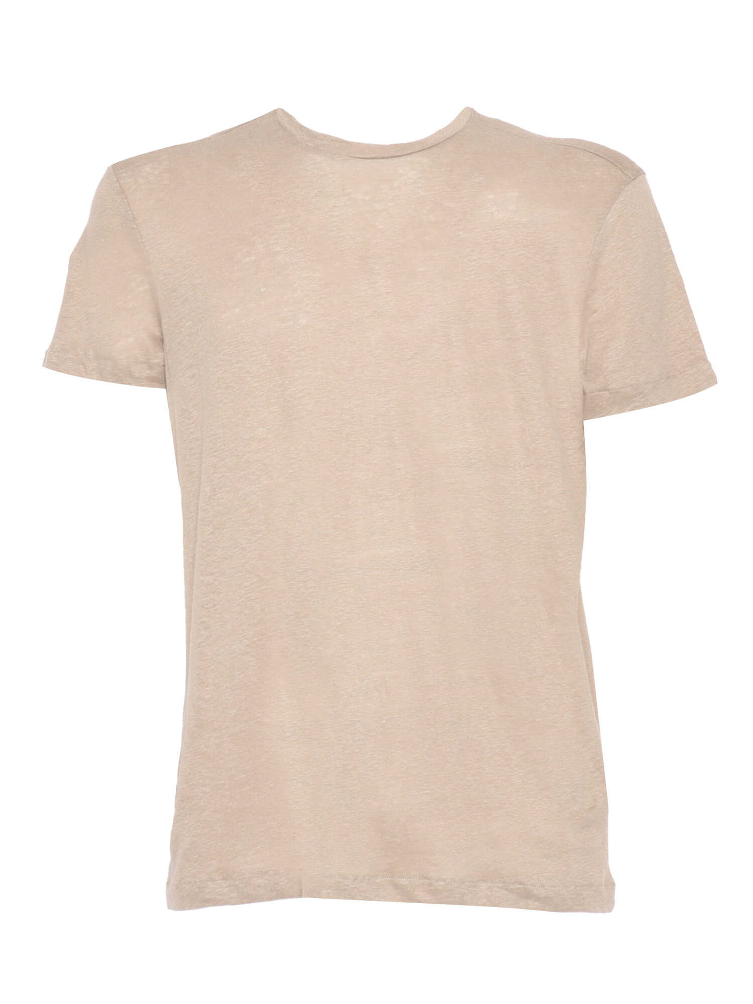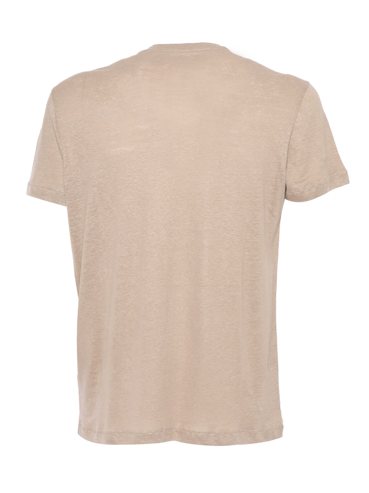 Beige stretch linen blend T-shirt, crew neck, short sleeves.
