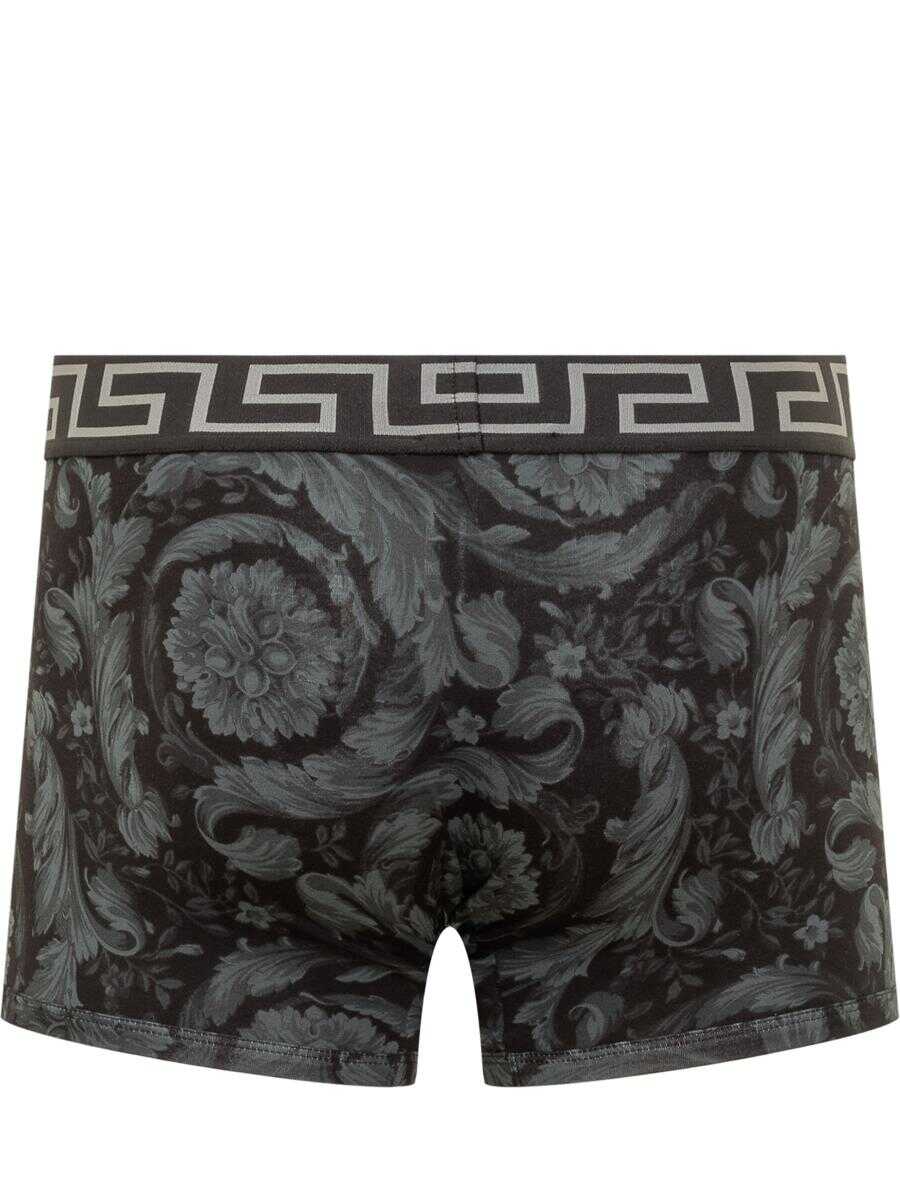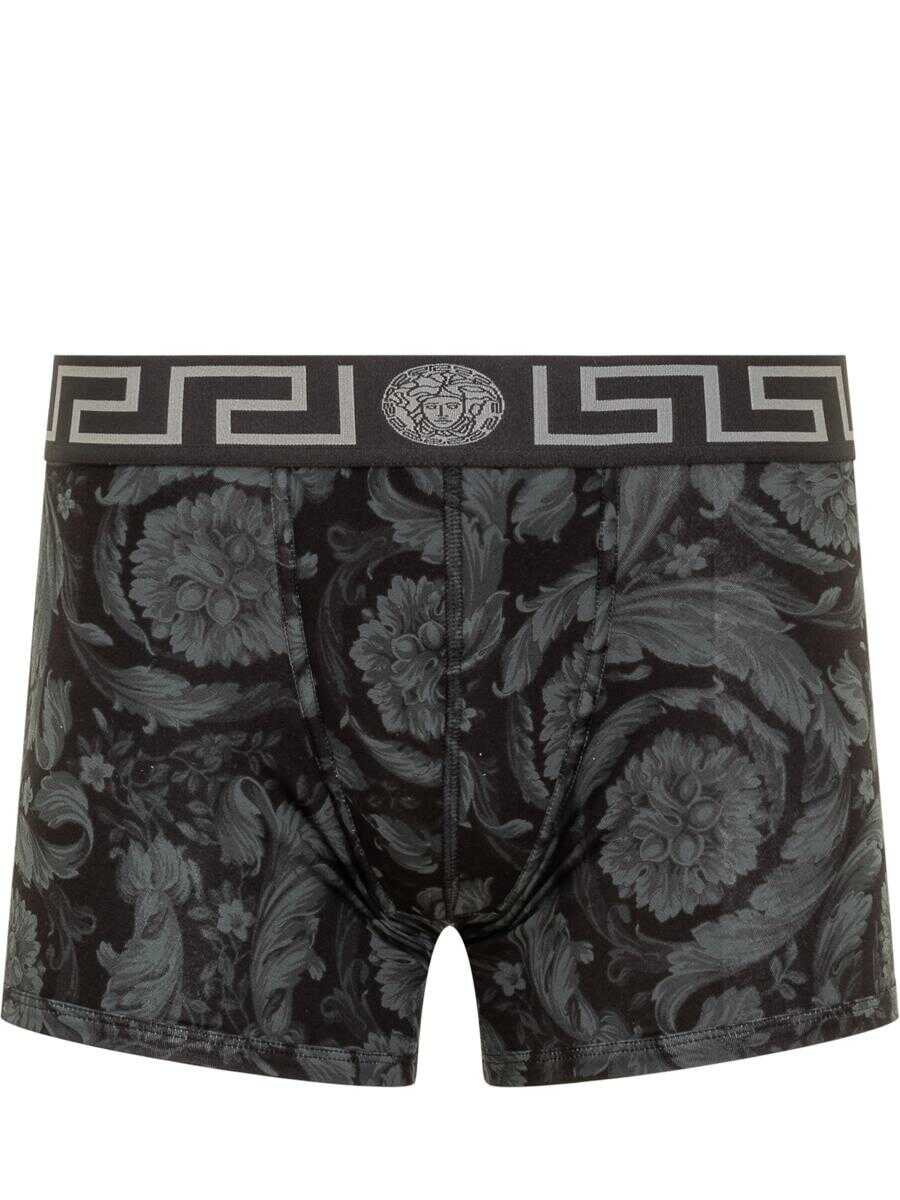 Boxer shorts with elastic waistband. Greca motif with Medusa on the elastic band. All-over Baroque motif.