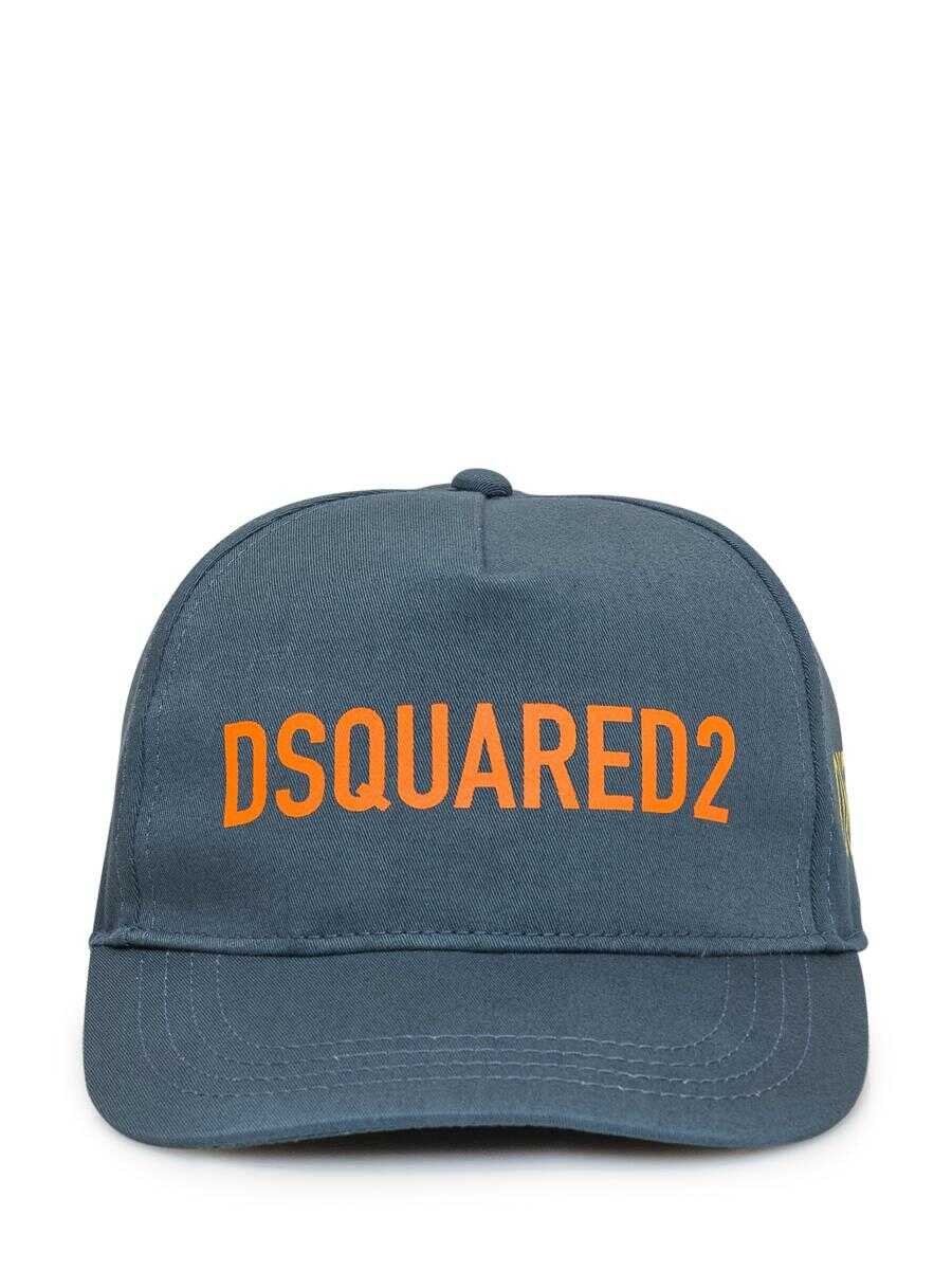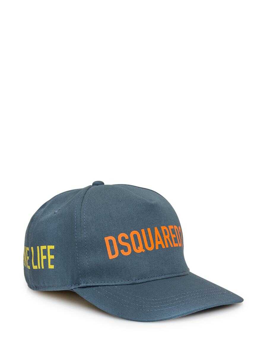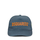 Green hat. Curved visor. Strap on back. Print on sides. Logo on front.