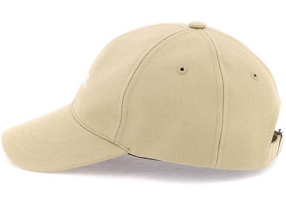 Baseball cap by A.P.C. crafted in cotton canvas with tonal logo embroidery on the front. It features topstitched visor, self-covered top button, embroidered eyelets and back adjustable strap with sliding metal buckle. Lined. Item in photo is size 58.