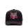 Black cotton baseball cap with visor. Adjustable strap and lettering on back. Horror Lodge logo on the front.
