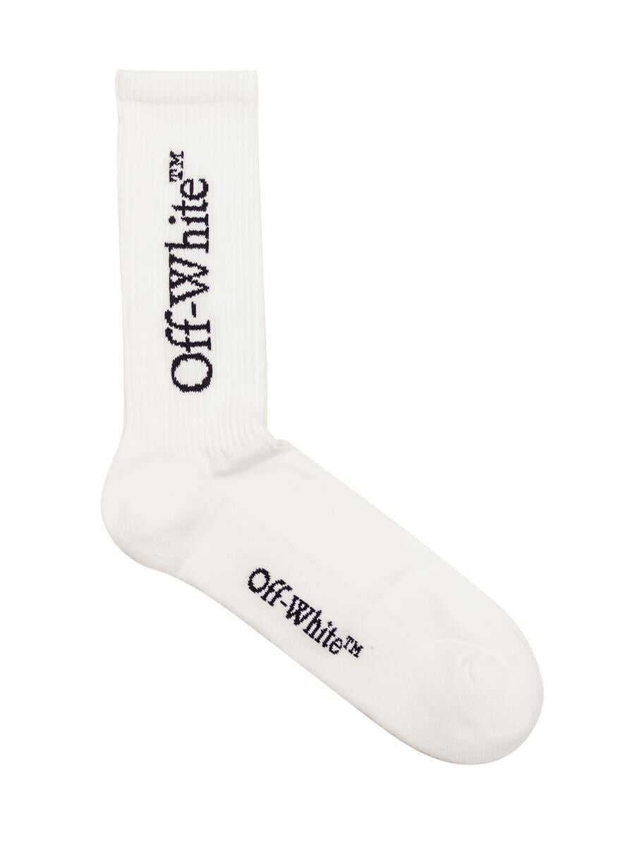 White cotton socks with Off-White logo embroidered on the sides. Height: 20
