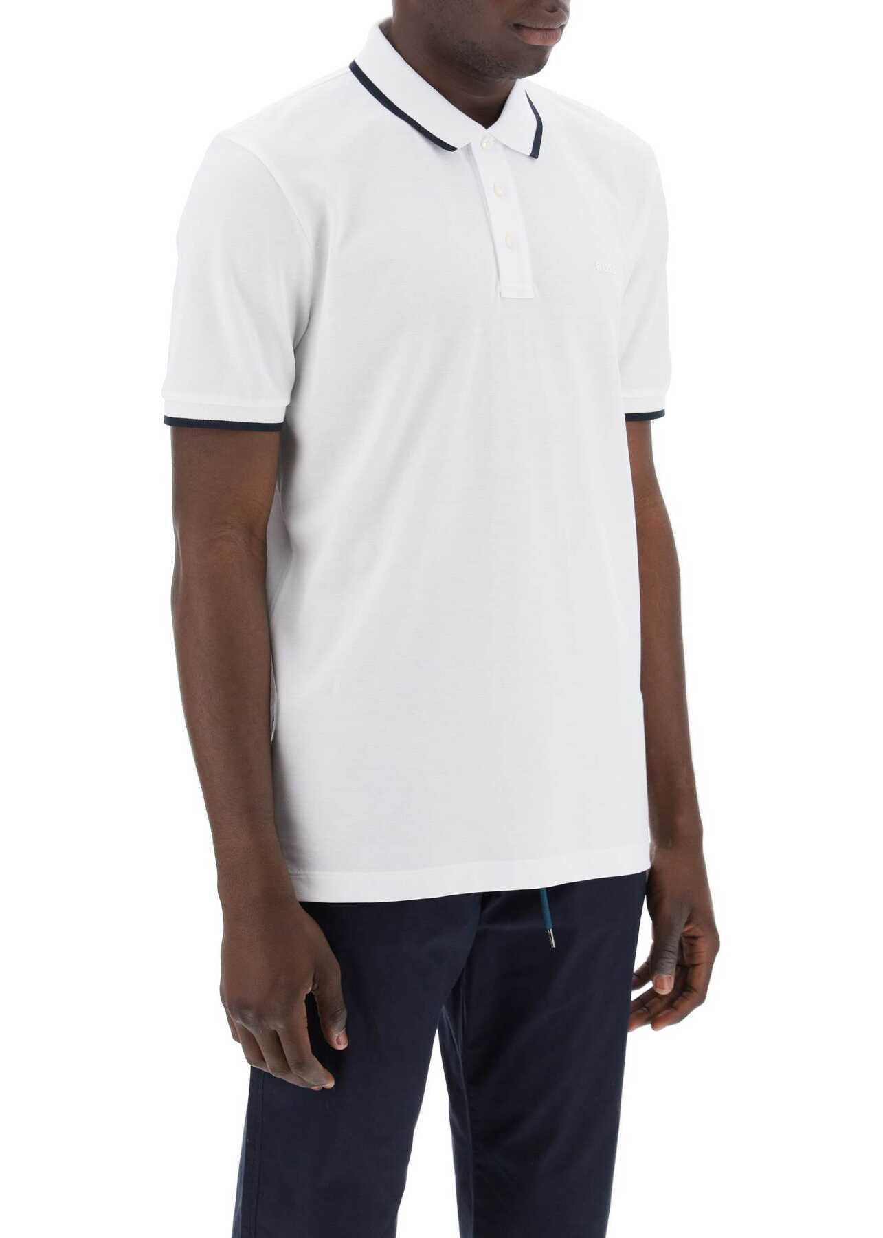 Crafted in cotton piqué , this short-sleeved Boss polo features a contrasting ribbed collar and sleeve cuffs, as well as a tonal rubber logo on the chest. It has a three-button closure and side slits for added comfort. The regular fit is perfect for everyday wear. The model is 187 cm tall and wears a size L.