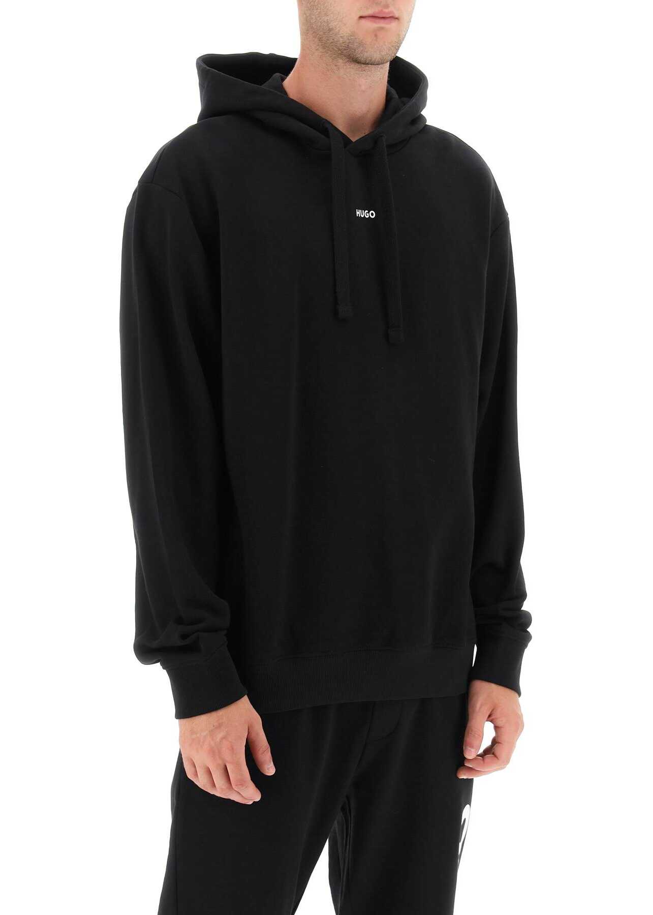 Hugo sweatshirt crafted in pure cotton french terry with contrasting rubberized logo on the chest. It fetaures adjustable hood with drawstring and ribbed hem and cuffs. Relaxed fit enhanced by low-set sleeves. The model is 187 cm tall and wears size L.