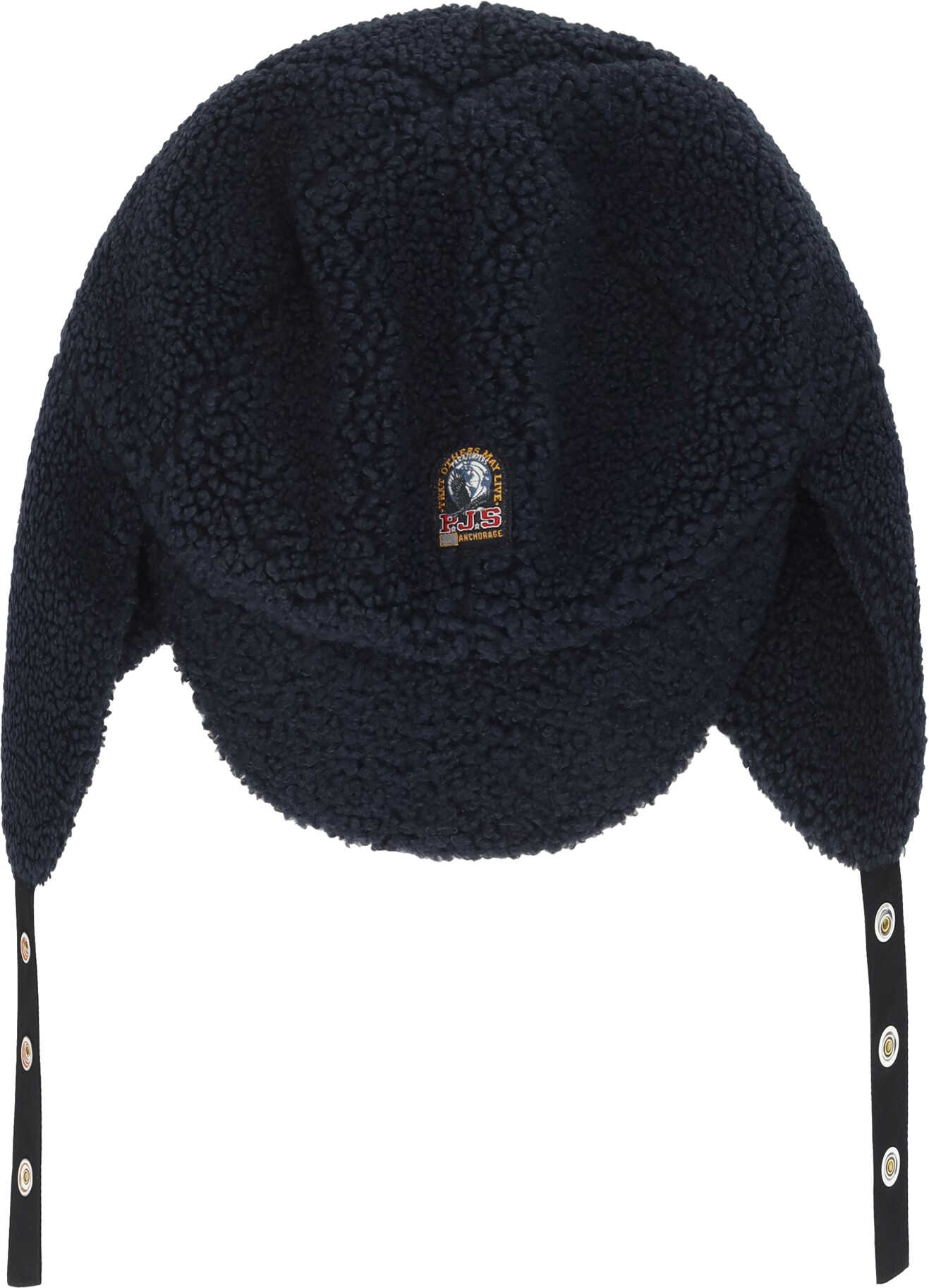 Power Jockey Hat by Parajumpers, faux fur design, adjustable strap under chin, side ear scale, contrasting brand logo opatch on front.