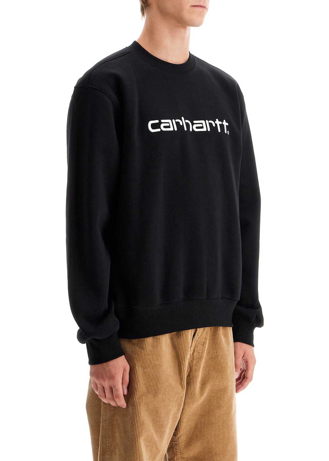 This Carhartt WIP crewneck sweatshirt is made of a cotton blend jersey with a soft brushed interior. Embroidered with the logo on the front, it has a relaxed fit with ribbed edges. The model is 187 cm tall and wears size M.