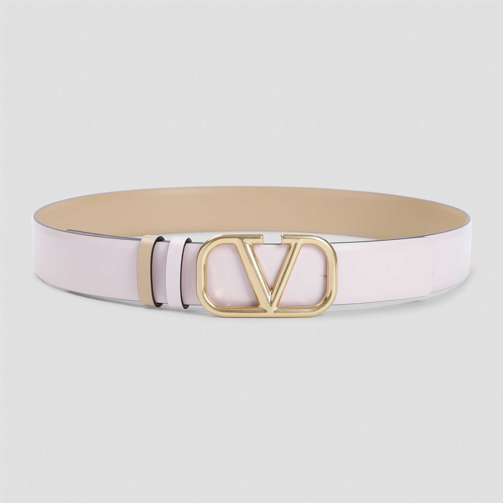 Make a bold statement with this Valentino Garavani Vlogo Signature Reversible Belt in stunning Pink & Purple. Crafted from 100% leather, this belt features a unique reversible style with a Vlogo signature buckle. Perfect for adding a touch of luxury to any outfit. Elevate your accessory game with this must-have piece! Height: 3cm. Women > Accessories > Belts