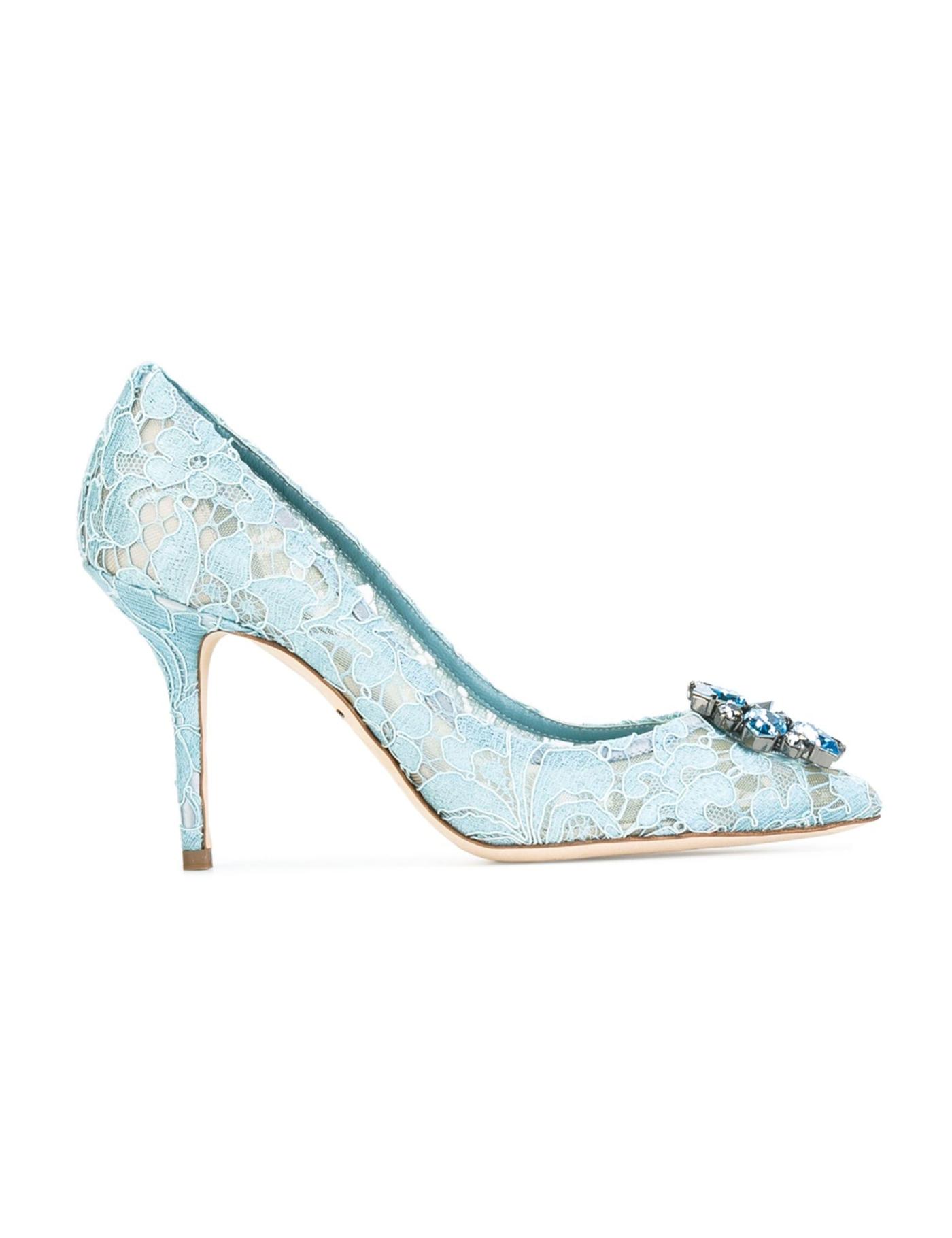 - Dolce and Gabbana live and breathe Italian spirit - reflected within their collection of sleek ready-to-wear and accessories that redefine Sicilian seductiveness. These light blue Bellucci Taormina lace pumps feature a pointed toe, a lace pattern, crystal embellishments, a brand embossed insole and a mid high stiletto heel.