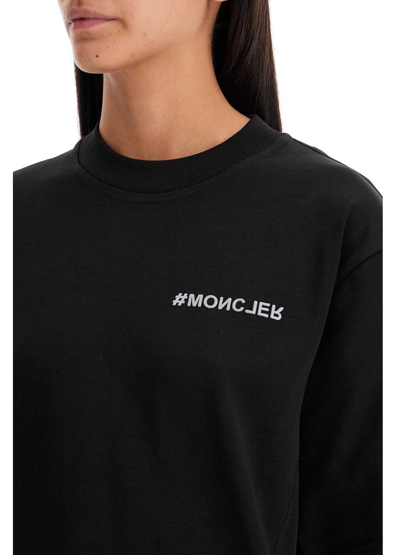 The Moncler Grenoble T-Shirt is made of cotton jersey and features a reflective logo lettering applied on the chest. It has a micro ribbed crew neck and a boxy, soft fit. The model is 177 cm tall and wears size S.
