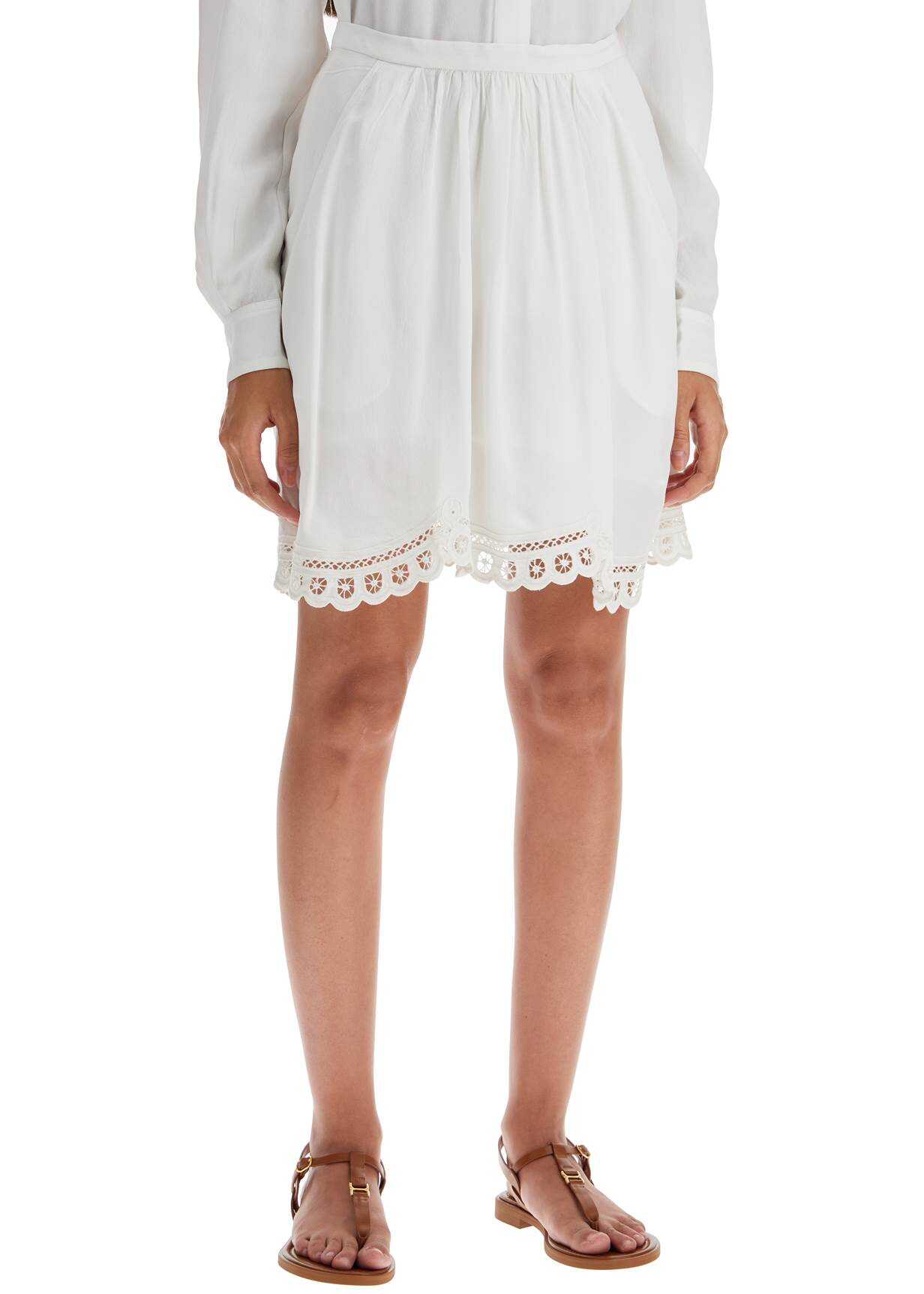 The Francesca mini skirt by Marant Etoile is made of lightweight viscose with a decorated hem and French pockets. It has a hidden zip closure at the back and a regular fit. The model is 177 cm tall and wears size FR 34.
