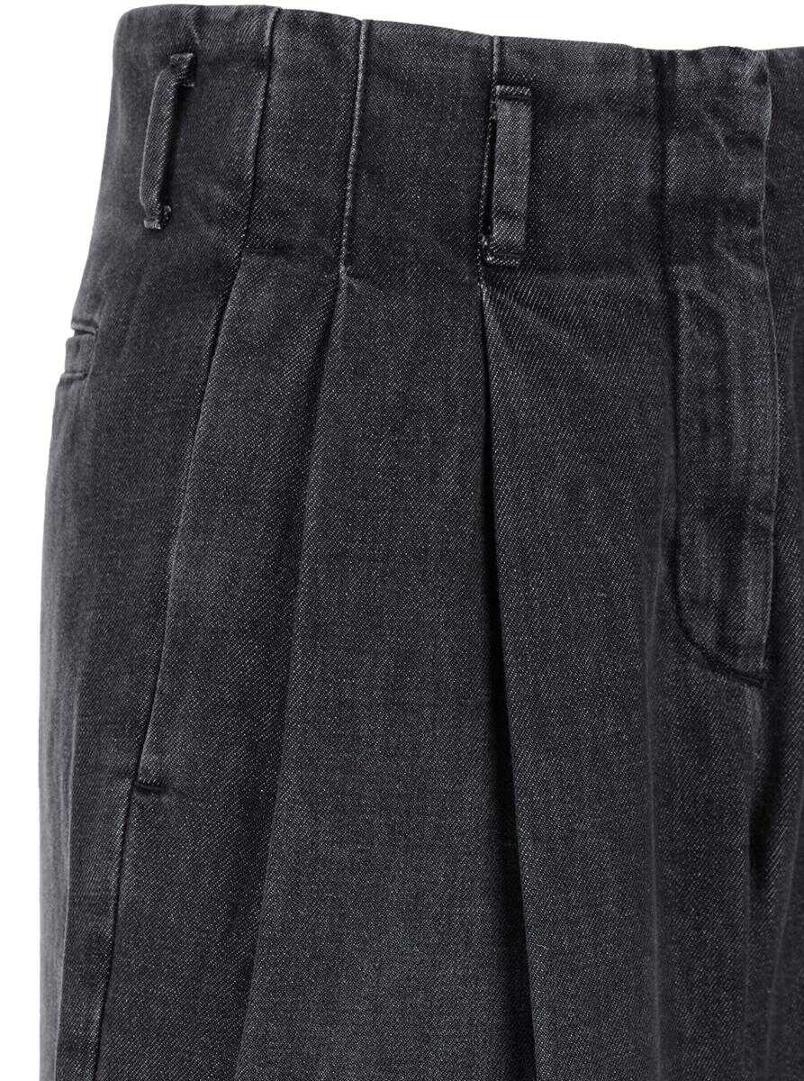 Jeans Grey High waist Belt loops Front concealed closure Pences on the front Two side pockets Logo detail on the rear Two rear welt pockets Wide leg Straight hem Denim Regular fit