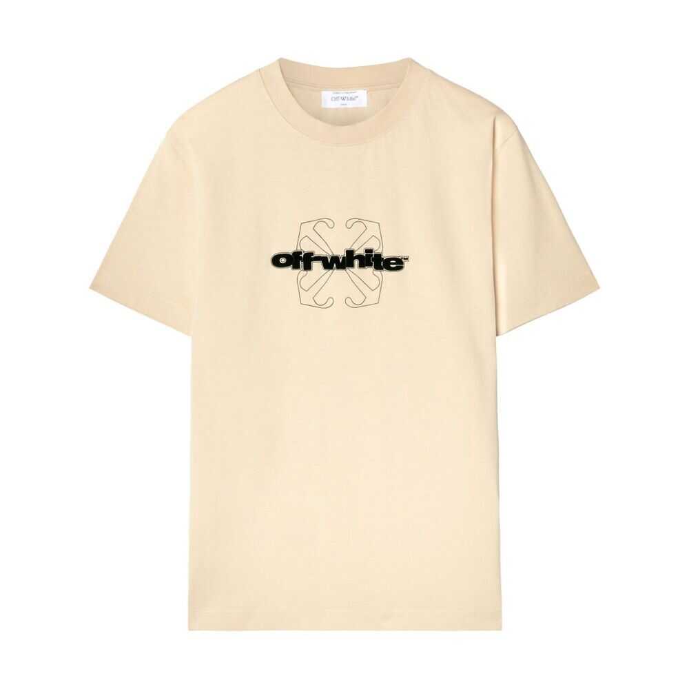 Beige cotton flocked logo crew neck short sleeves straight hem