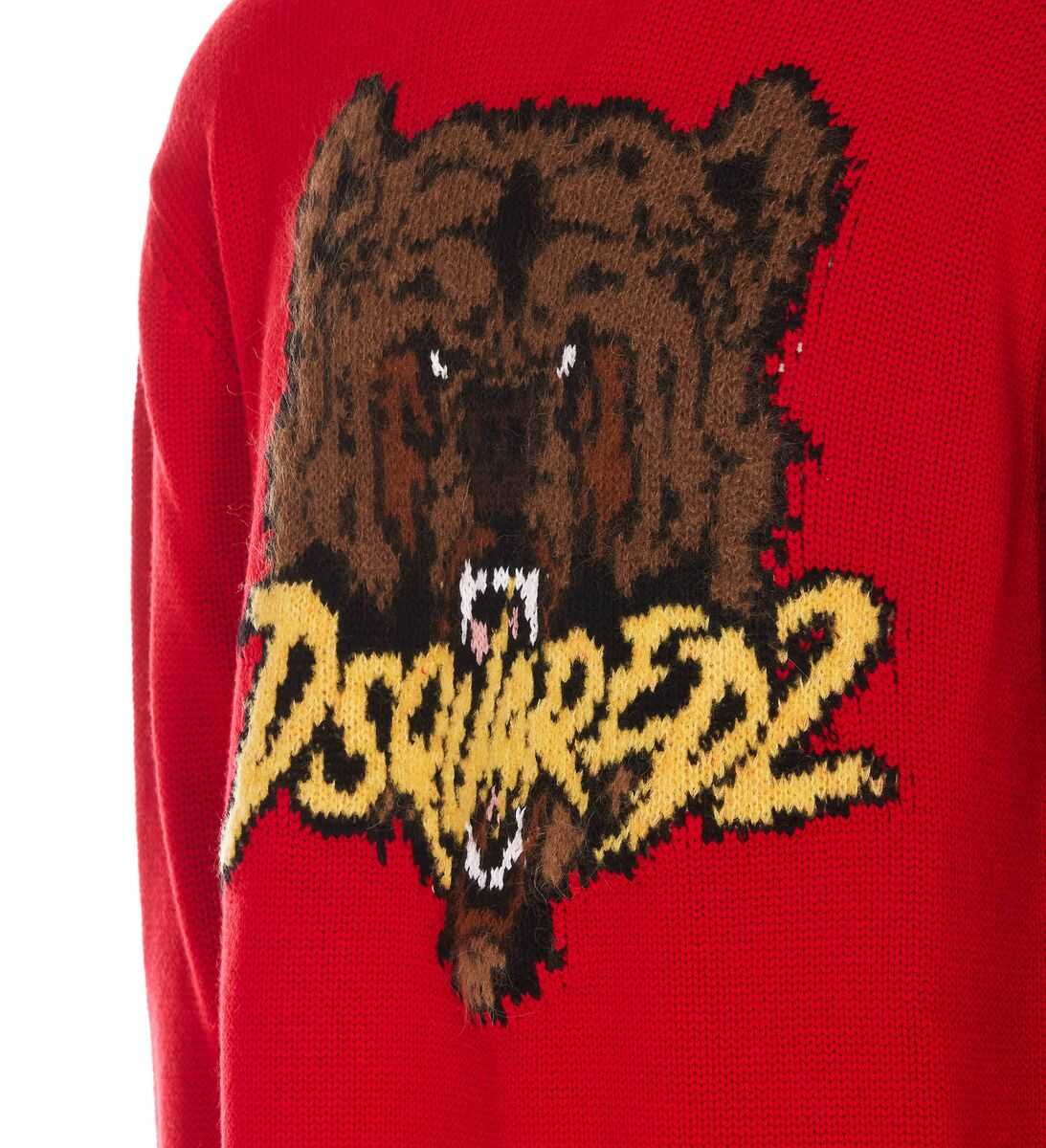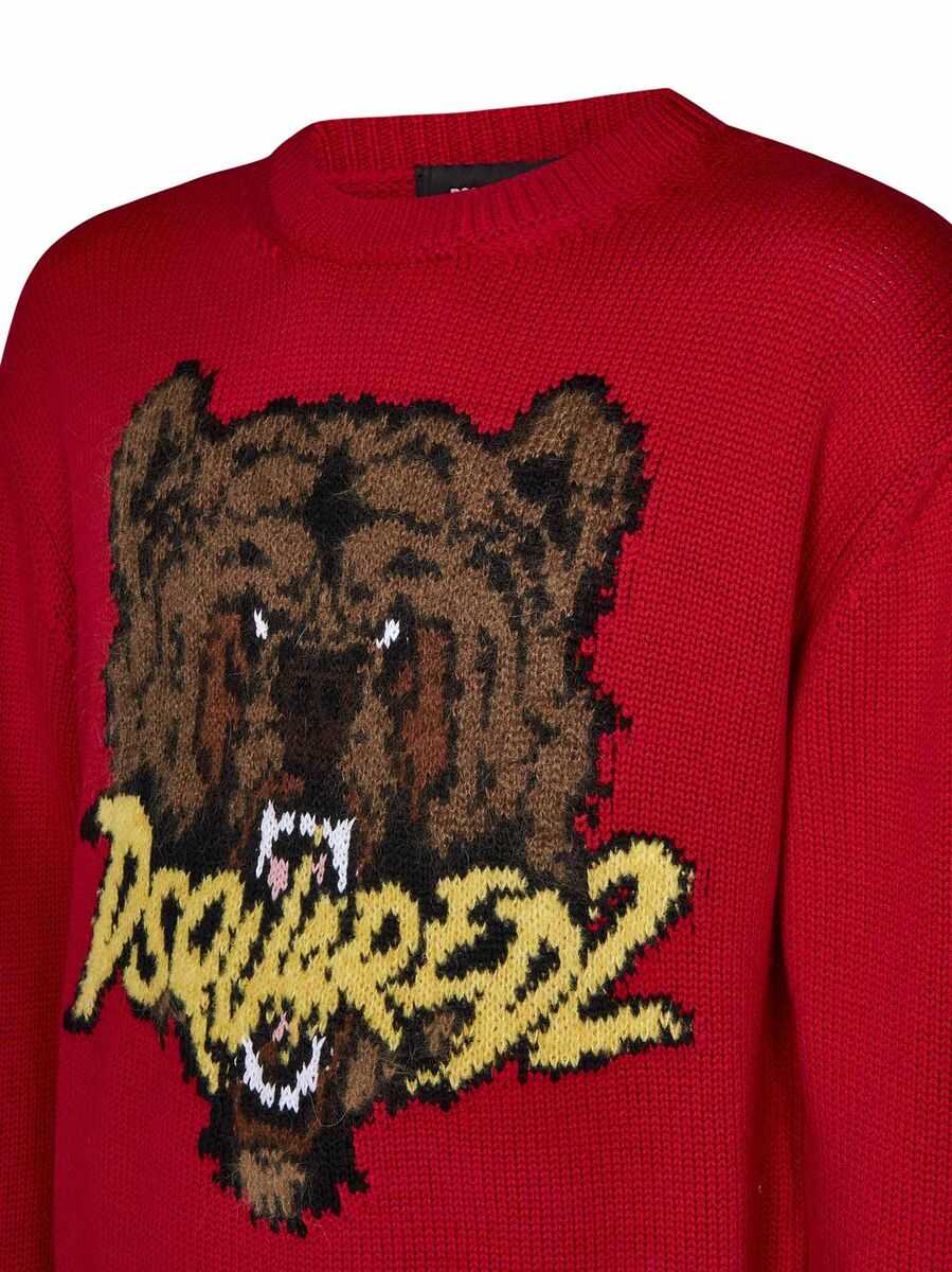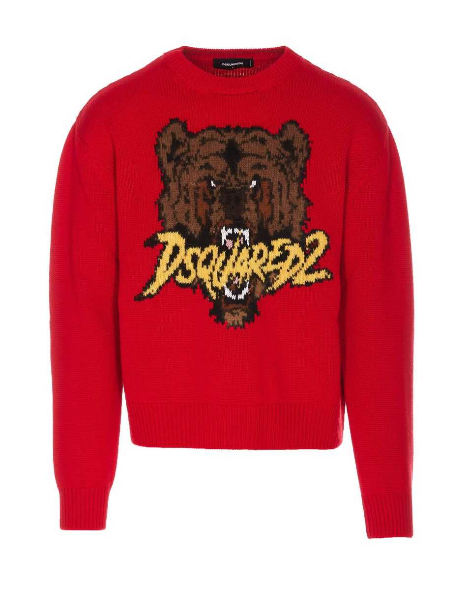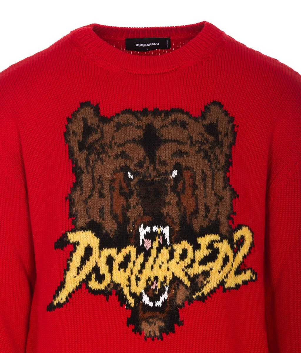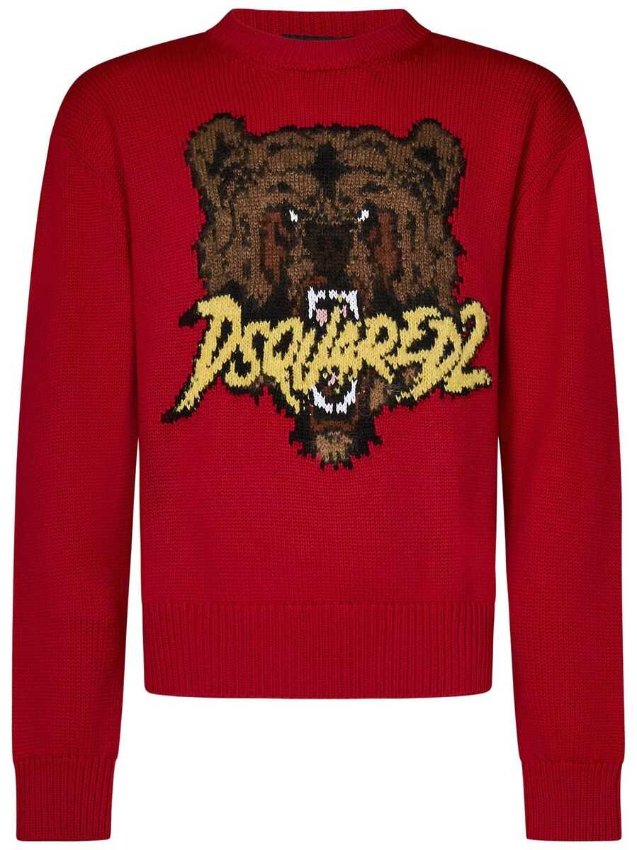 Red wool knitwear from DsQuared2 featuring long sleeves, round collar, ribbed cuffs and hem, frontal logo and soft vestibility. Size Type: AMERICA