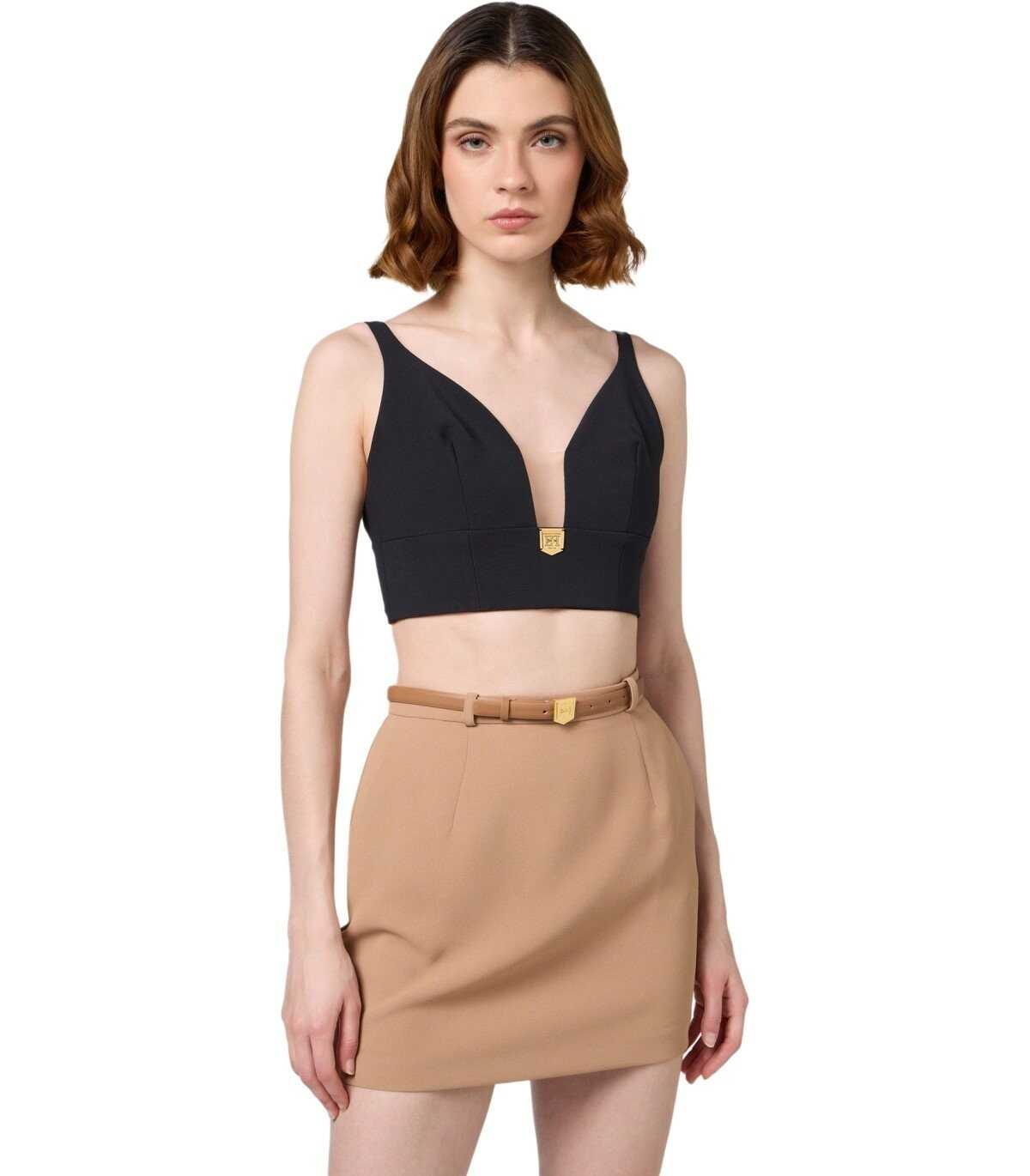 ELISABETTA FRANCHI BLACK CROP TOP WITH LOGO